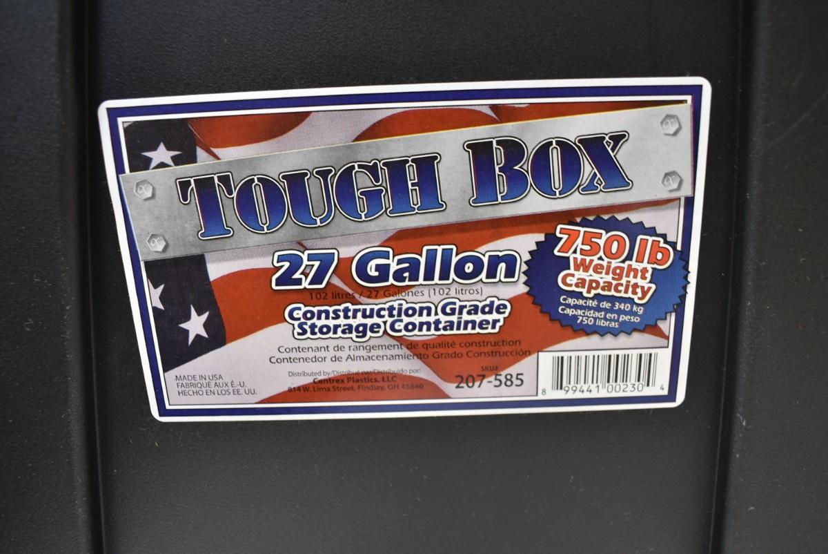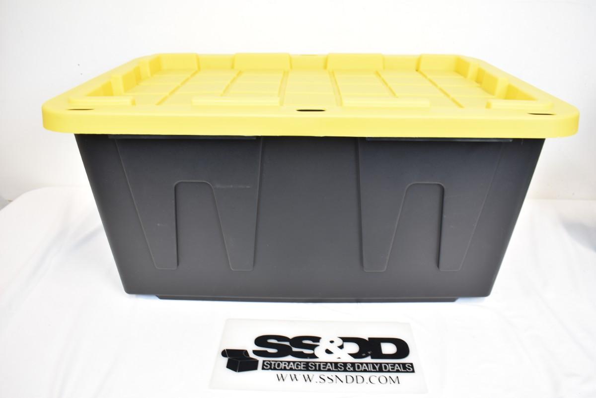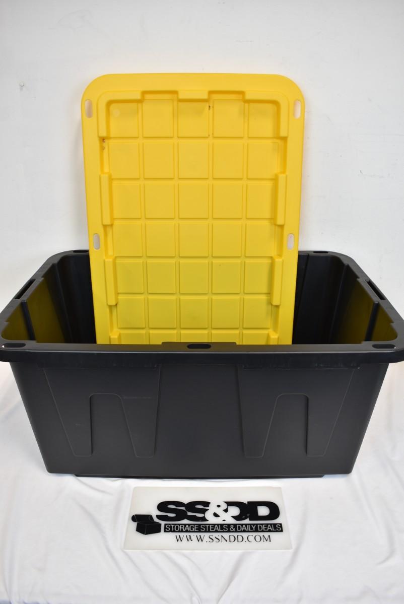 Large Storage Bin, Black w/ Yellow Lid. Tough Box 27 Gallons