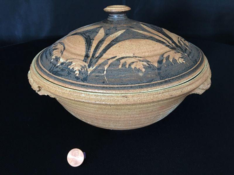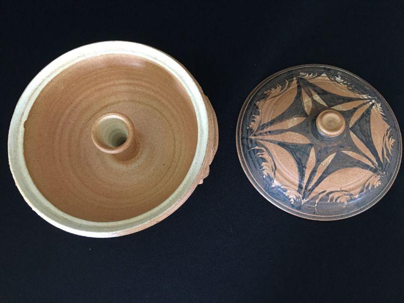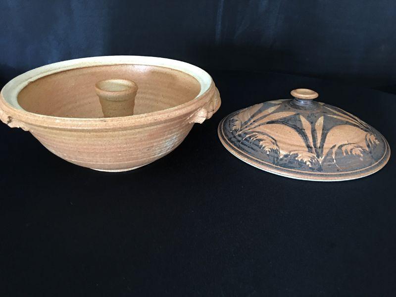 Lidded Handthrown Bowl w/ Steam Spout Hand Painted Glaze Lot # 320