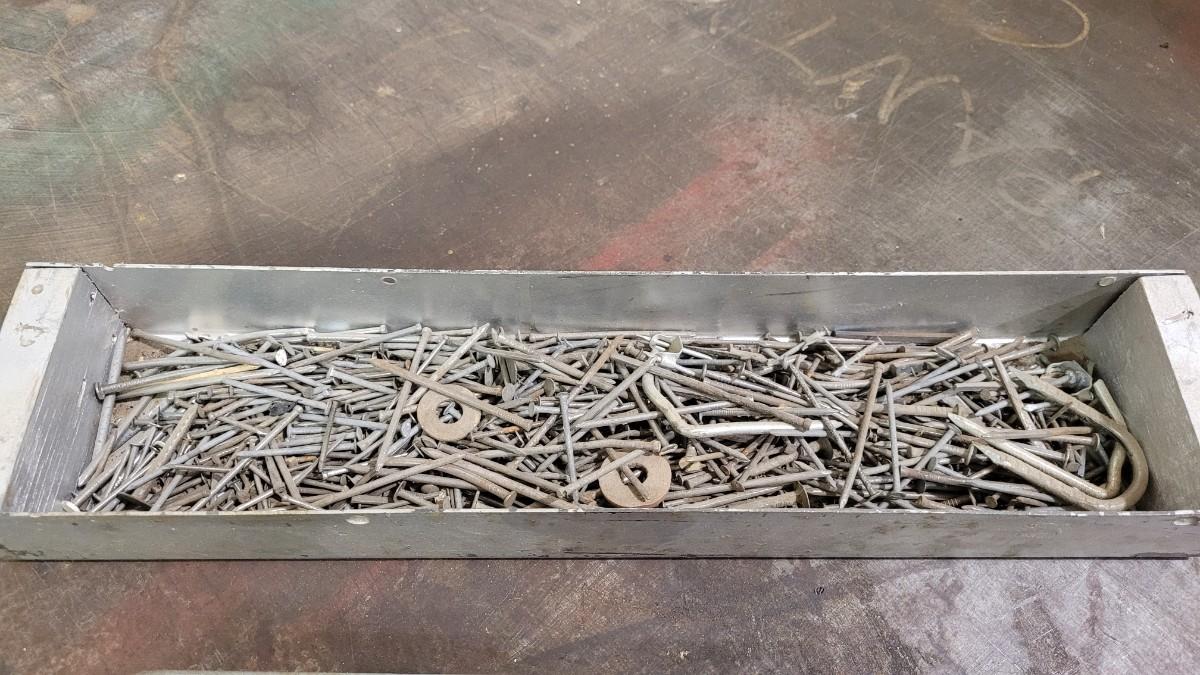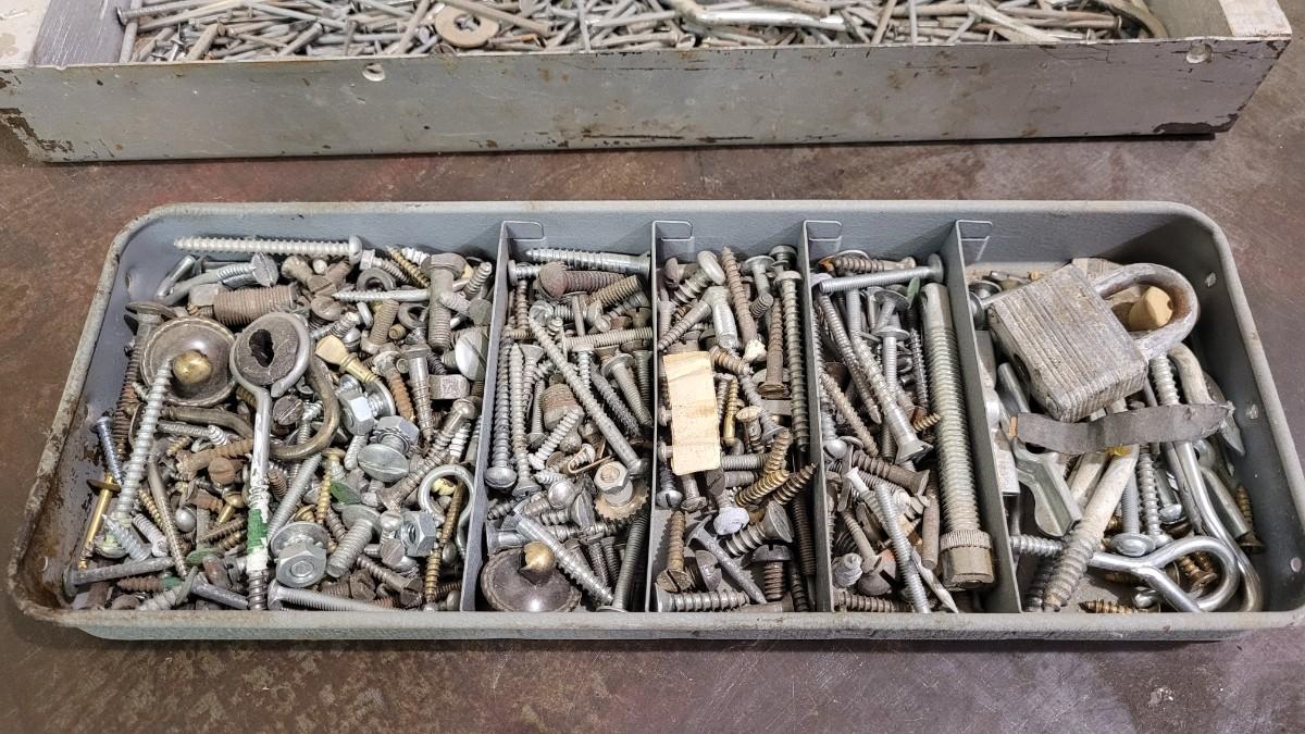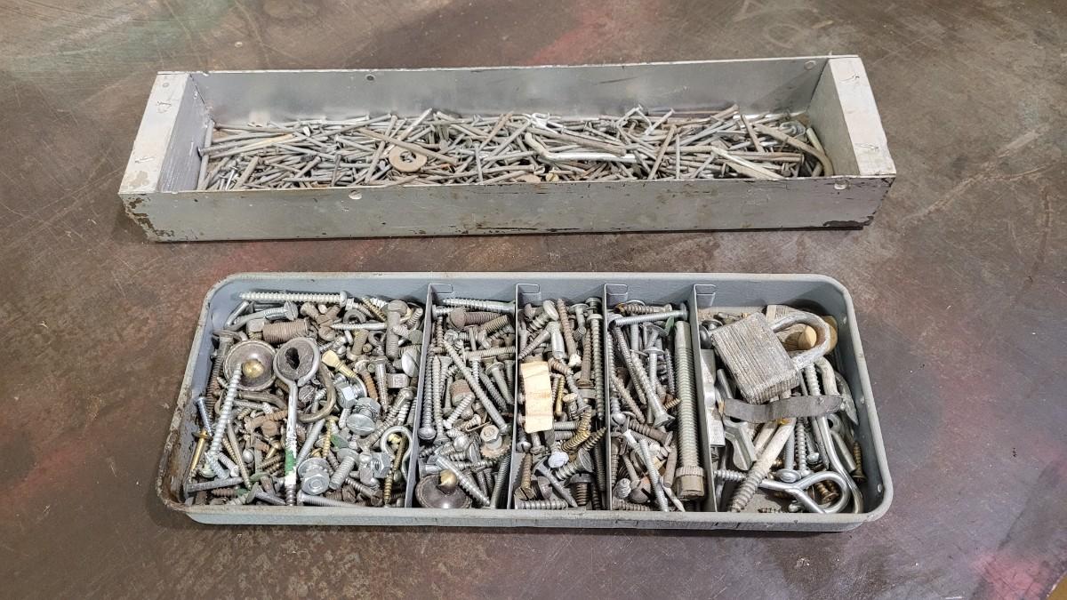 Lot 100: (2) Vintage Hardware Pans w/ Assorted Hardware Lot #5