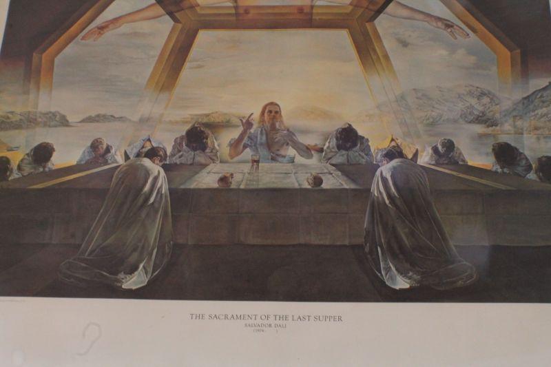 Lot #100-B: Vintage SALVADOR DALI "The Sacrament of the Last Supper" Art Print Glass Front Framed 27.5" x 22.5"