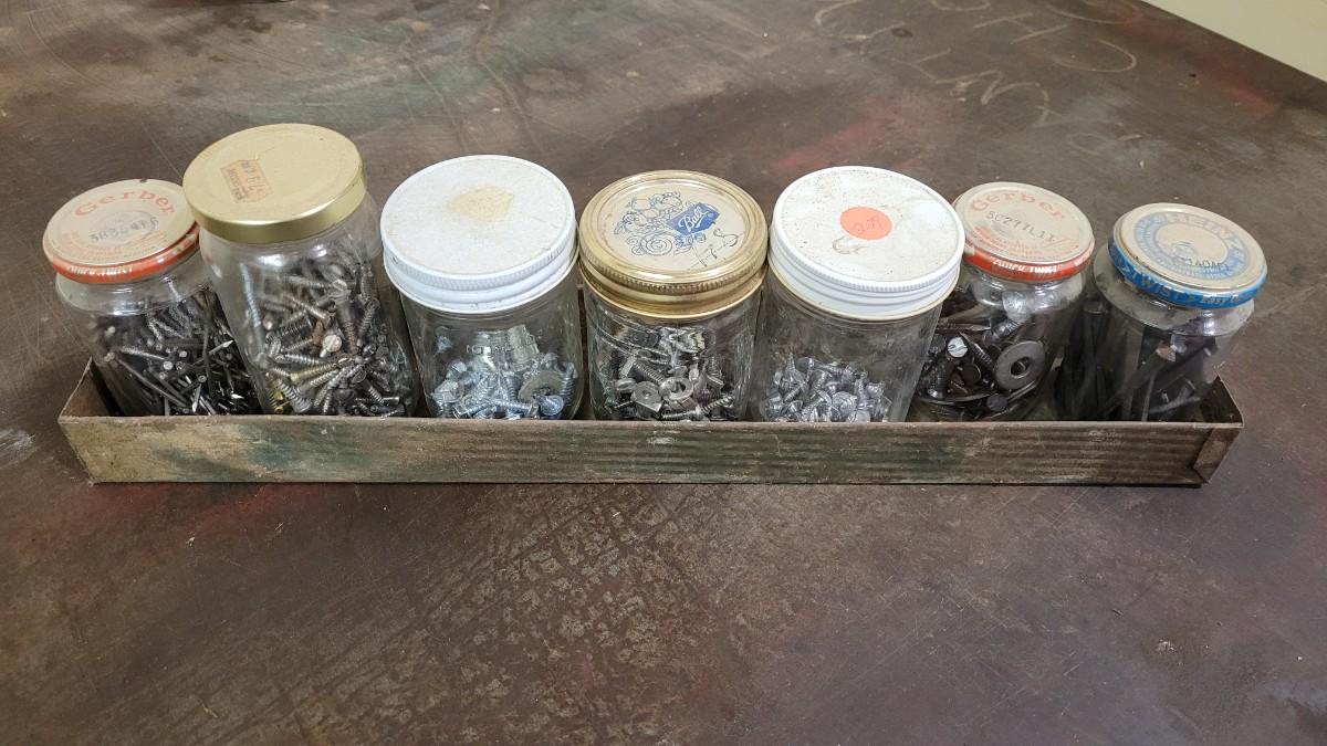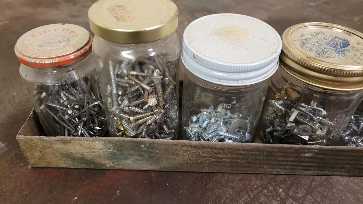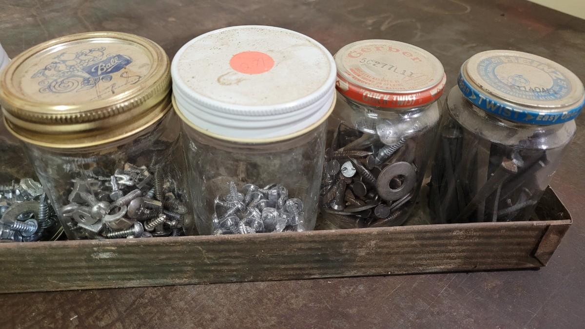 Lot 101: Vintage Assortment of Hardware in Jars w/ Lid