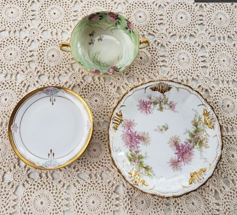 Lot 112: Limoges Bee Bowl, Limoges Chrysanthemums Plate & 3 Pickard Plates