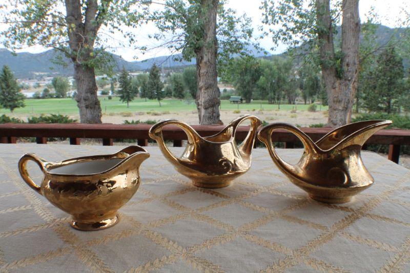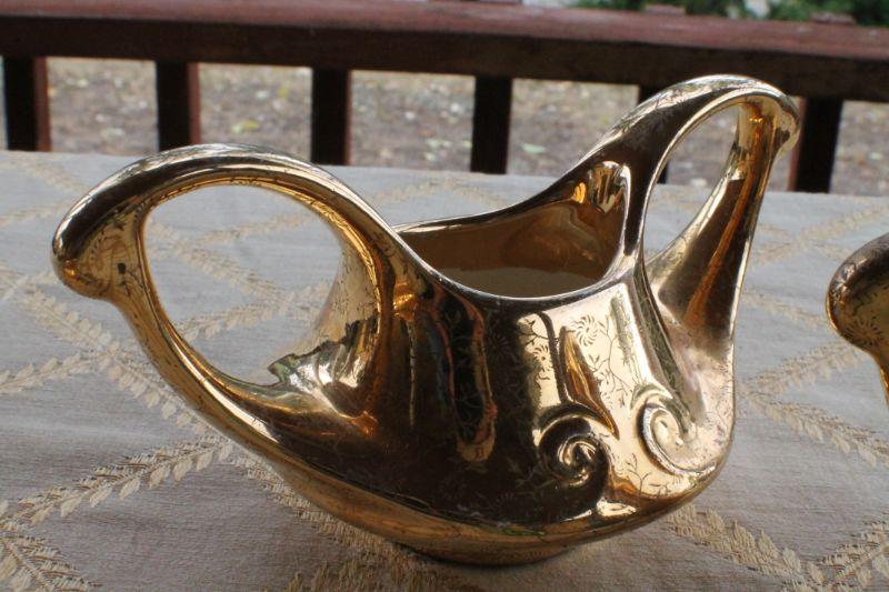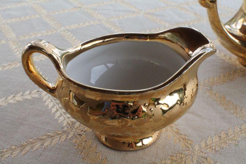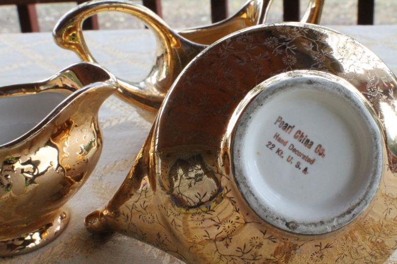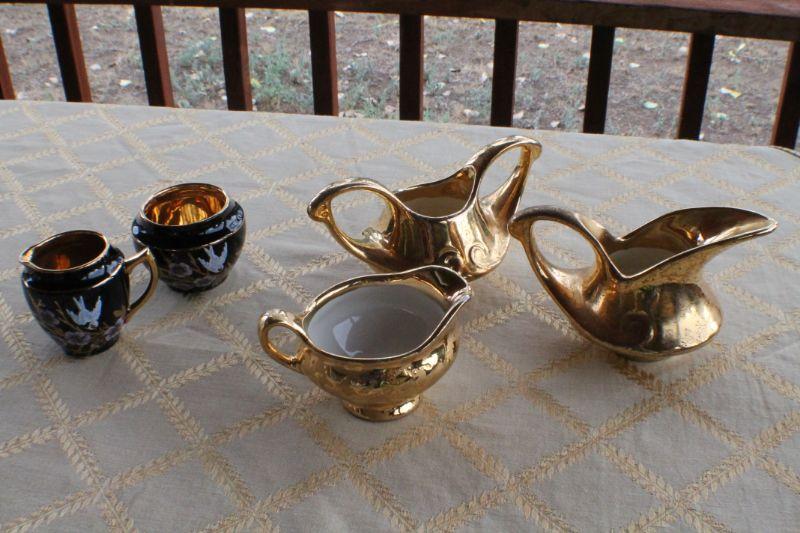 Lot #122: Group of (5) Assorted Gold Plated Tea Service Dishes