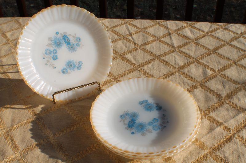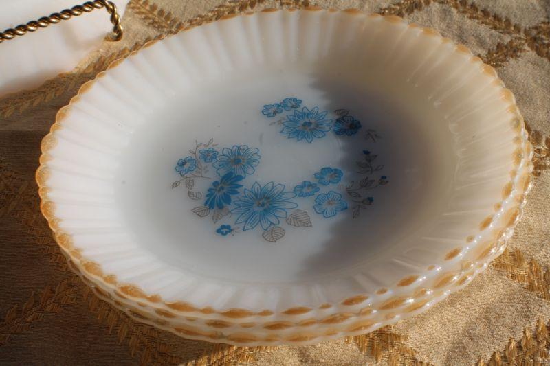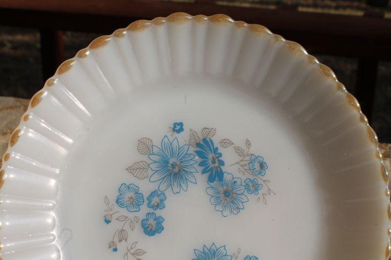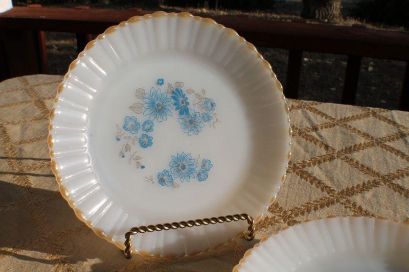 Lot #133: Set of (4) Vintage Mid Century Modern Glass Plates w/ Blue Flower Deco Unmarked