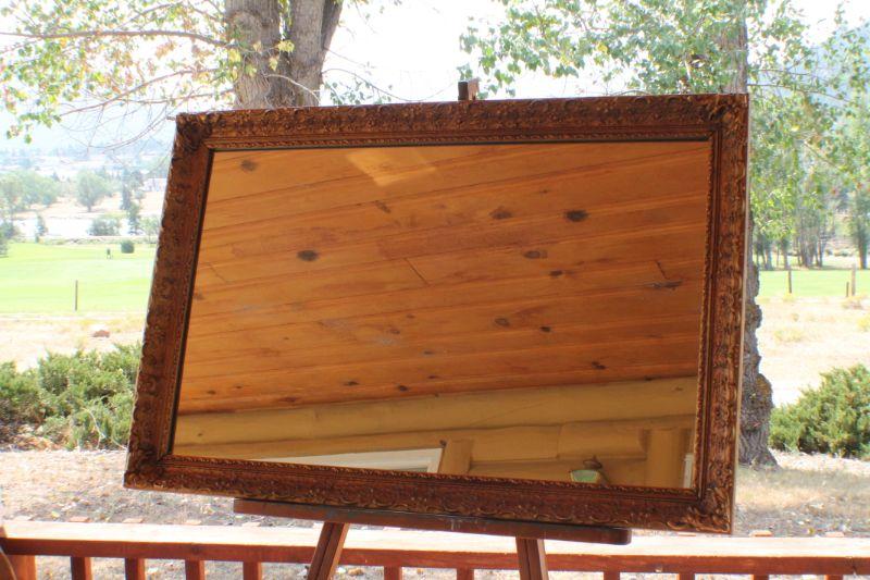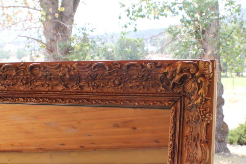 Lot #144: Vintage Large HEAVY Mirror w/ Wood Carved Frame 36" x 24"