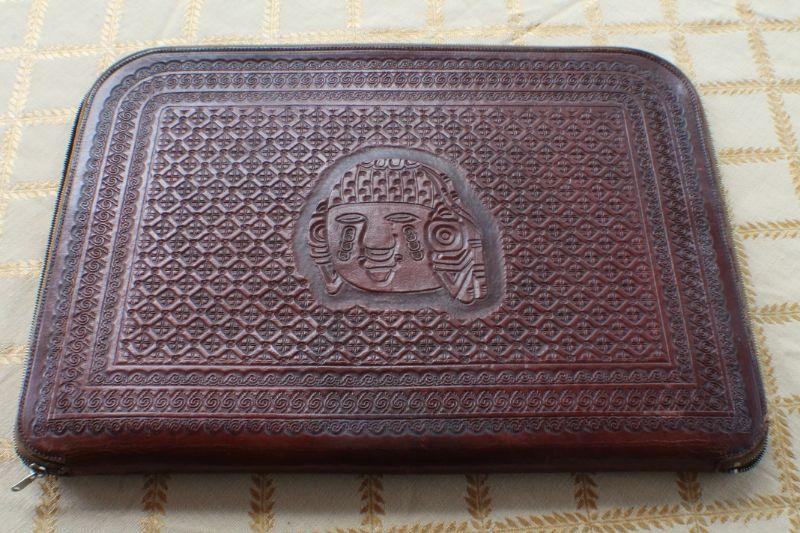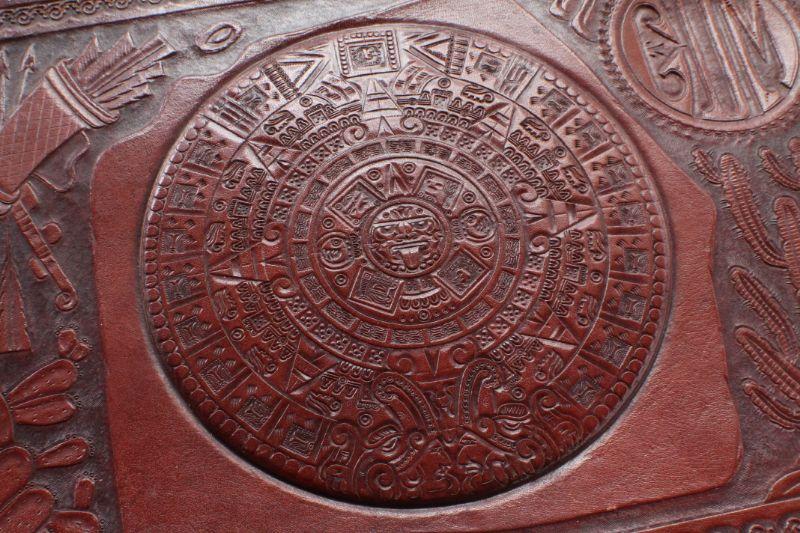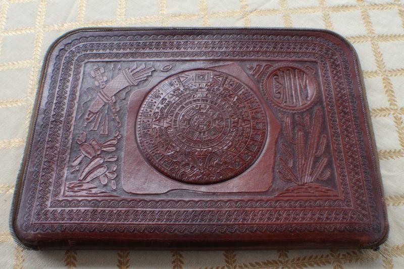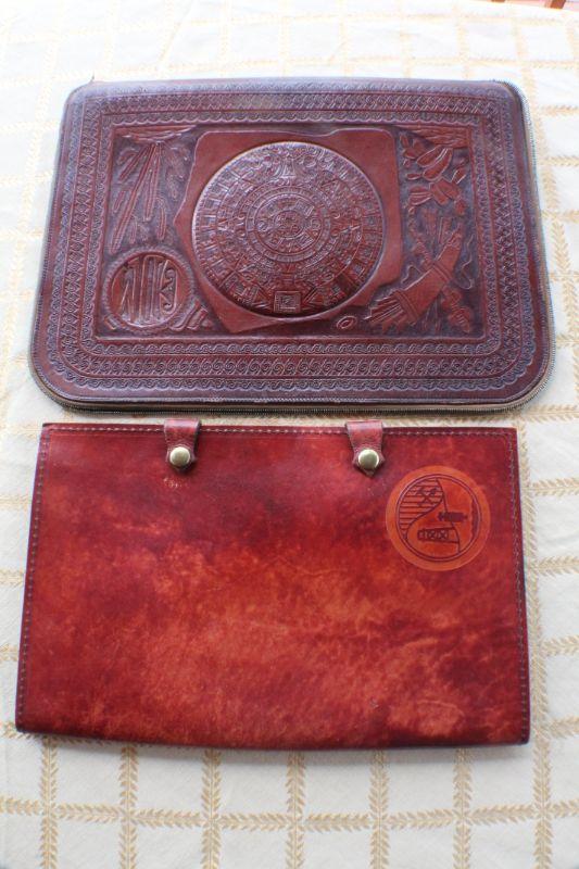 Lot #168: (2) Vintage Leather Business or School Document Binders (Mayan Calendar and Oil Field)