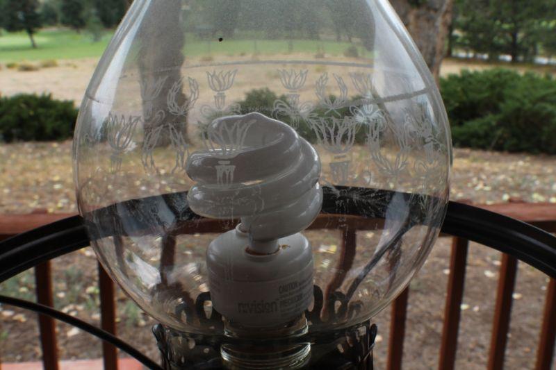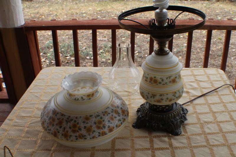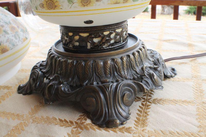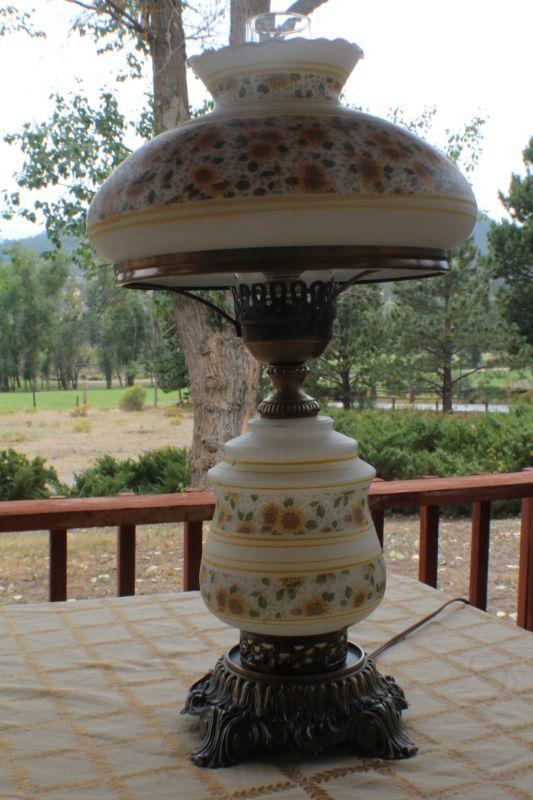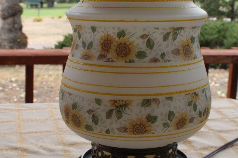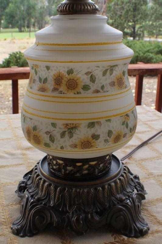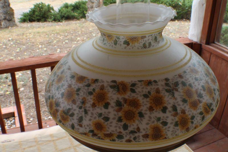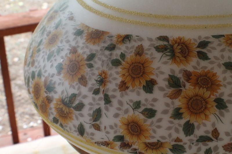 Lot #177: Vintage Tall Glass Shade Lamp Sunflower Theme (top shade has crack)