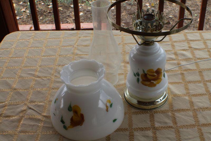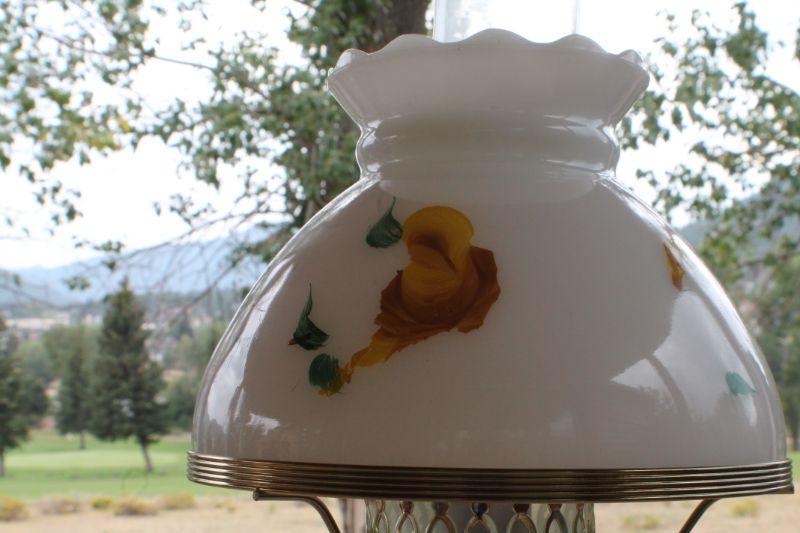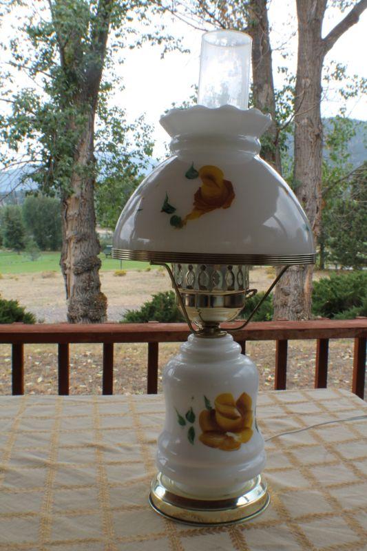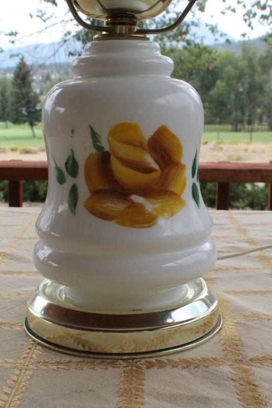 Lot #178: Vintage Tall Glass Shade Table Lamp Yellow Flower Theme #2