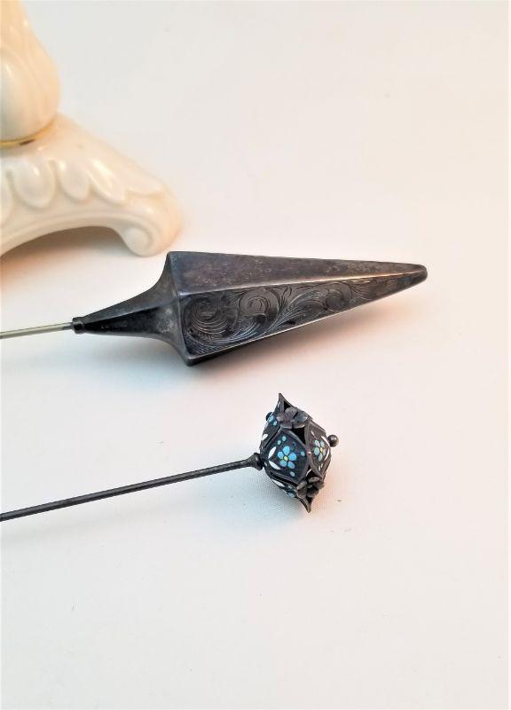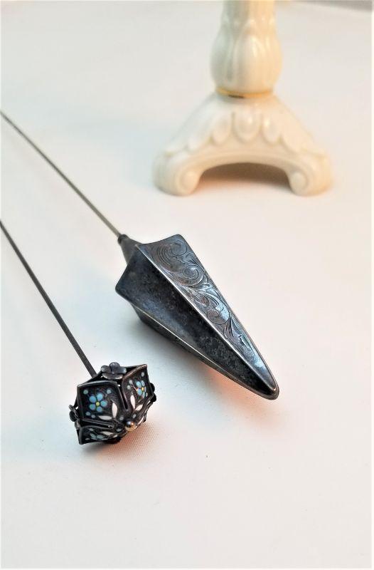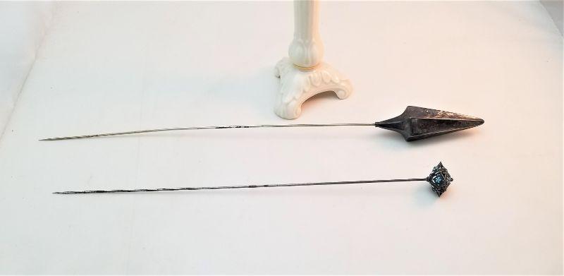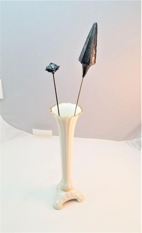 Lot #223 Two antique Sterling Silver Hatpins in Lenox Vase