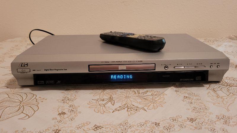 This JVC XV-S502BK introduces a new slim design for a "all-in-one" player that people are looking for. Not only does it play DVD & CD; it also plays the new CD-R/RW recordable CD formats, SVCD, VCD, MP3 formats and Digital Stills (JPEG on CD-R/RW). Don't let the slim design fool you, the XV-S502BK is packed with many exciting features such as Digital Direct Progressive Scan, Multi-Brand remote, three theater positions, 3-D Phonic sound, variable and slow search,zoom, digest and strobe play, angle list and resume function. Optical and Coaxial digital audio outputs with Dolby Digital & DTS pass-through are provided for easy connection to any system. Plus JVC'S exclusive AV Compulink.