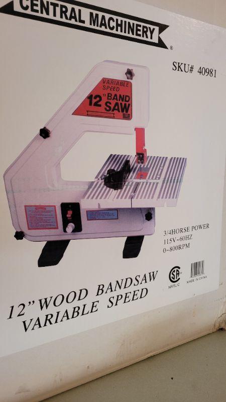 Lot 45: New CENTRAL MACHINERY 12" Wood Bandsaw Variable Speed