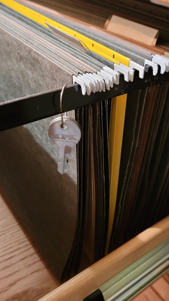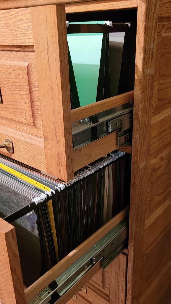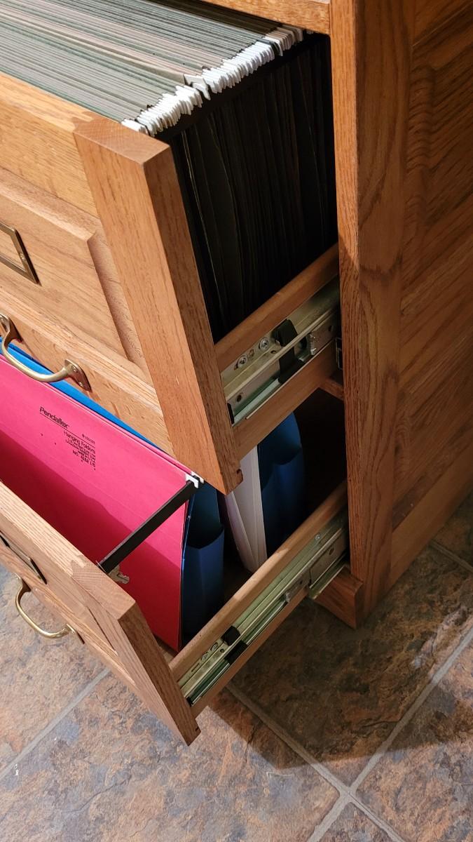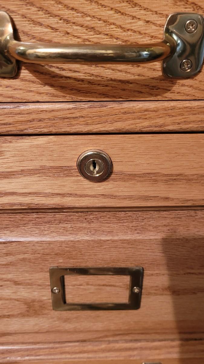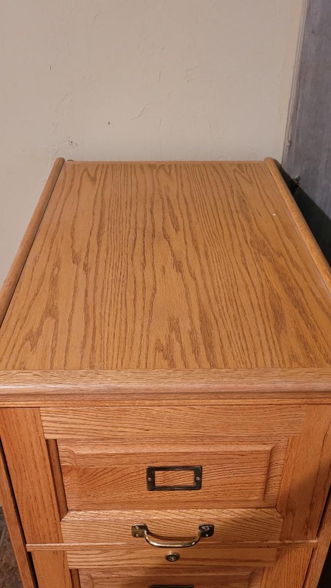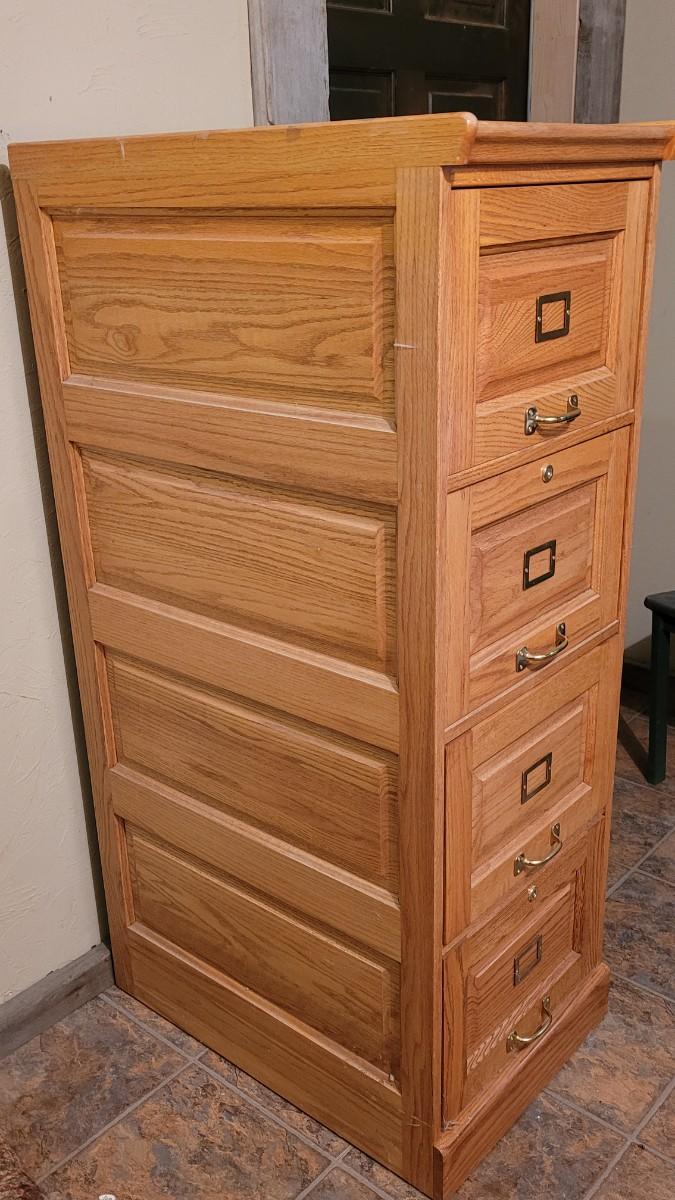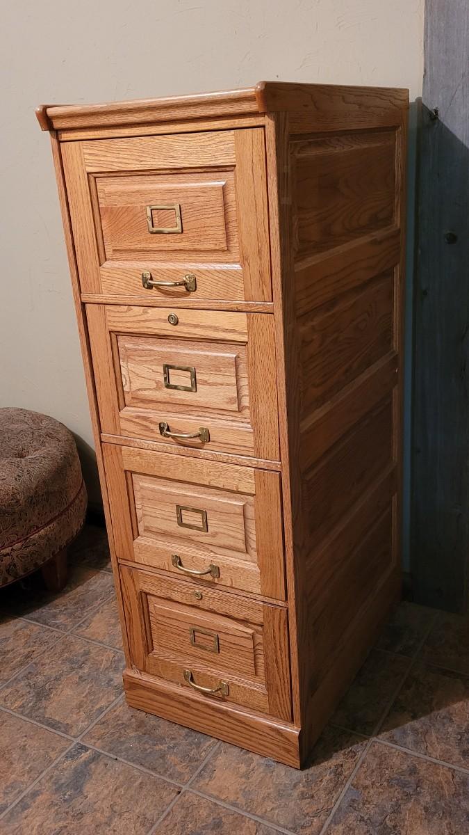 Lot 46: Wood File Cabinet with Keys & Hanging Folders