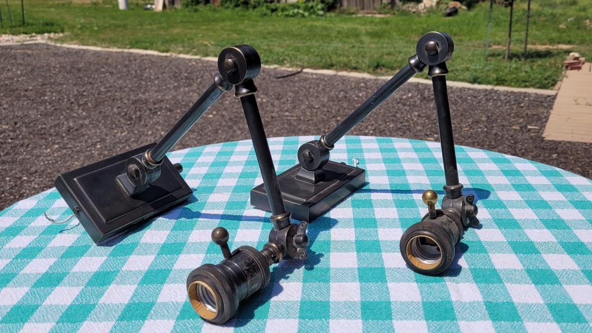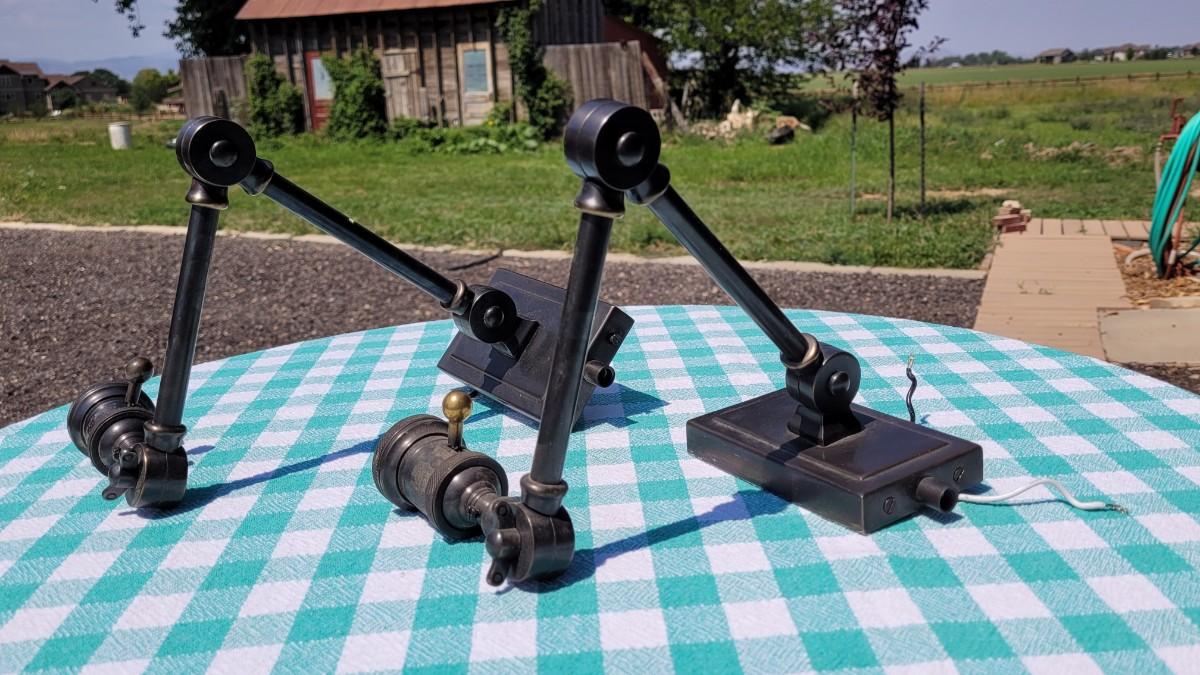 Lot 5: Industrial Brushed Copper Wall Mounted Lamps with (2) Bulb Clamp Shades
