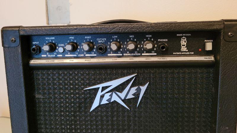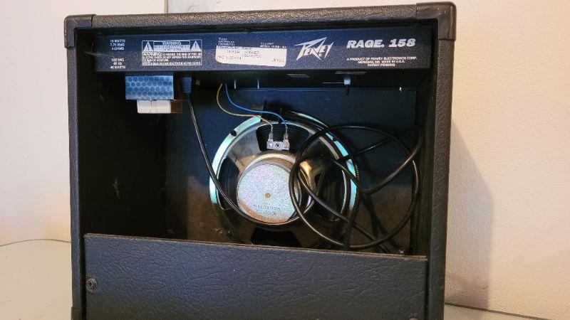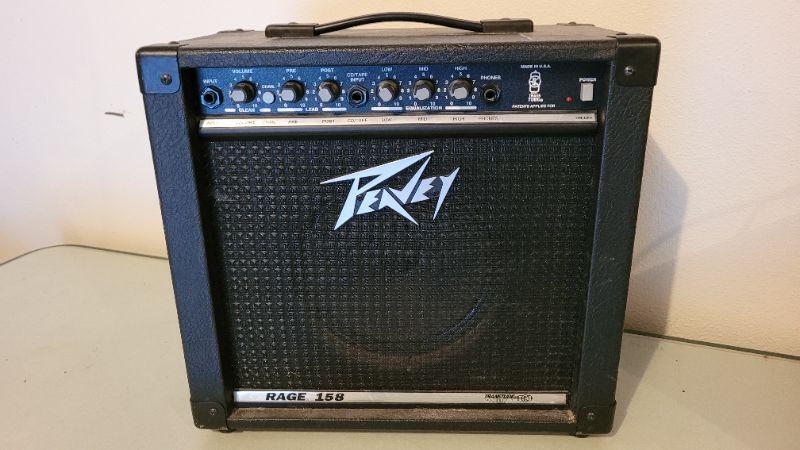The Peavey Rage 158 15W Guitar Amplifier features 2 channels and 2 radically different voicings -- Modern and Vintage. The Modern position maintains a warm, standard voicing while the Vintage position adds a hint of brightness to emulate some classic amp designs. Pre and post gain knobs, 3-band EQ, a headphone jack, and a tape or CD input make this hard-hitting little amp perfect for back porch jamming or solo practice.