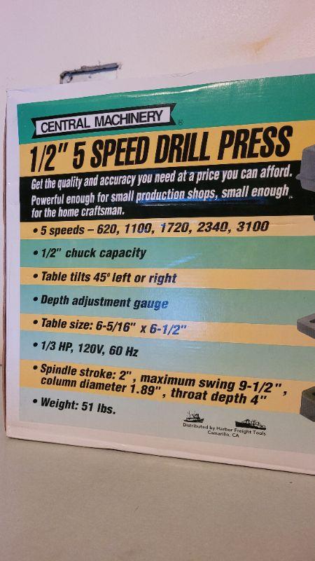 Lot 76: New 1/2" 5 Speed CENTRAL MACHINERY Drill Press