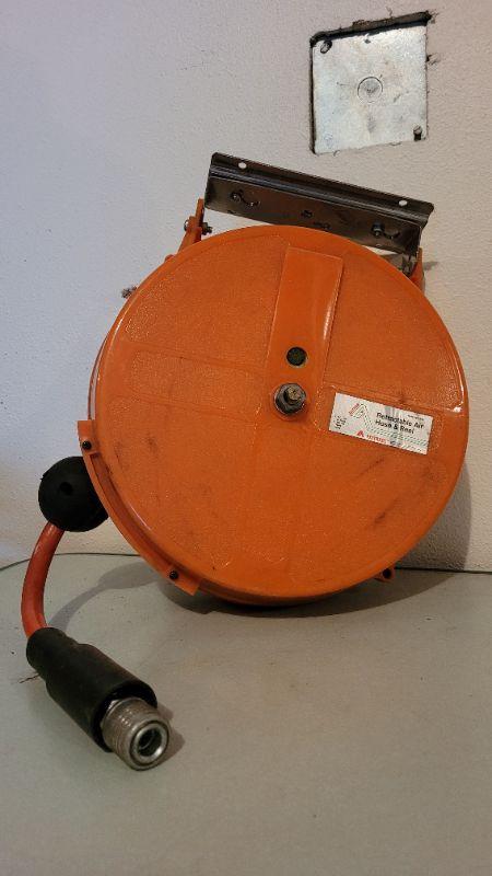 Lot 80: Vintage Retractable Air Hose and Reel ORANGE