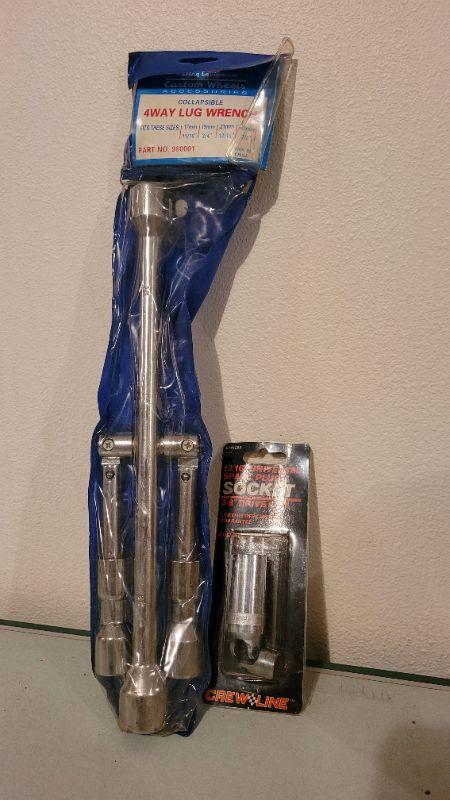 Lot 89: (2) New Tools - 4 Way Lug Wrench and Universal Socket