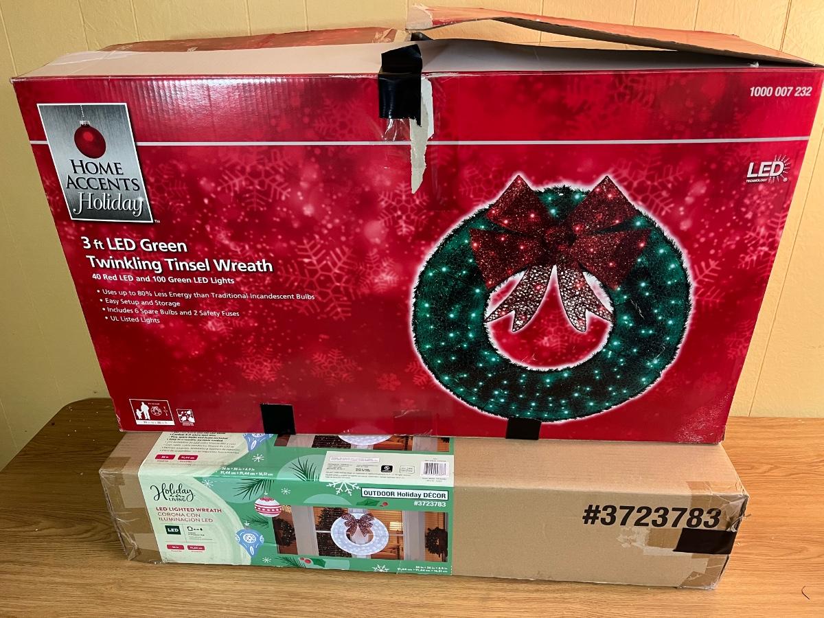 LOT 265B: Two 36" LED Lighted Christmas Wreaths