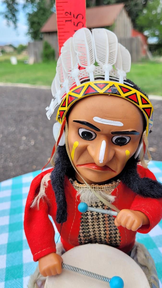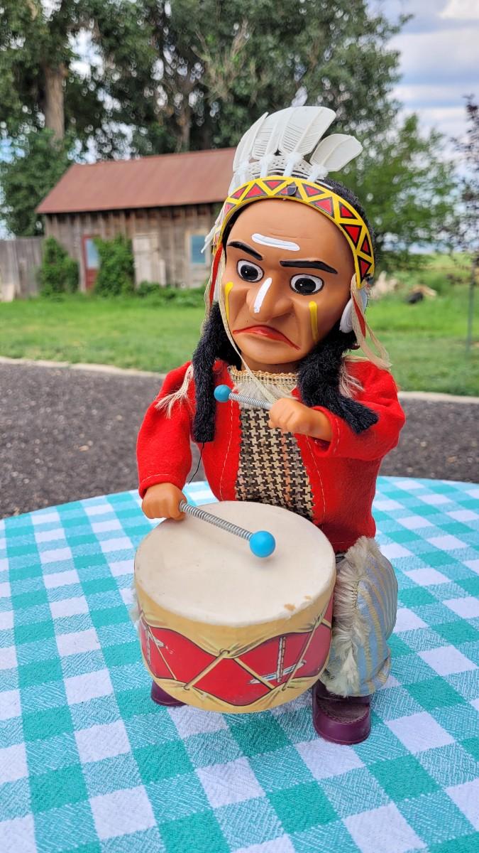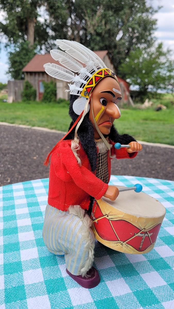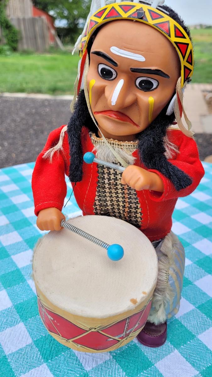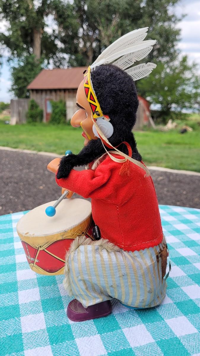 Lot 95: Vintage DRUMMING INDIAN "Joe" - Alps Tin Toy - Battery Operated- untested