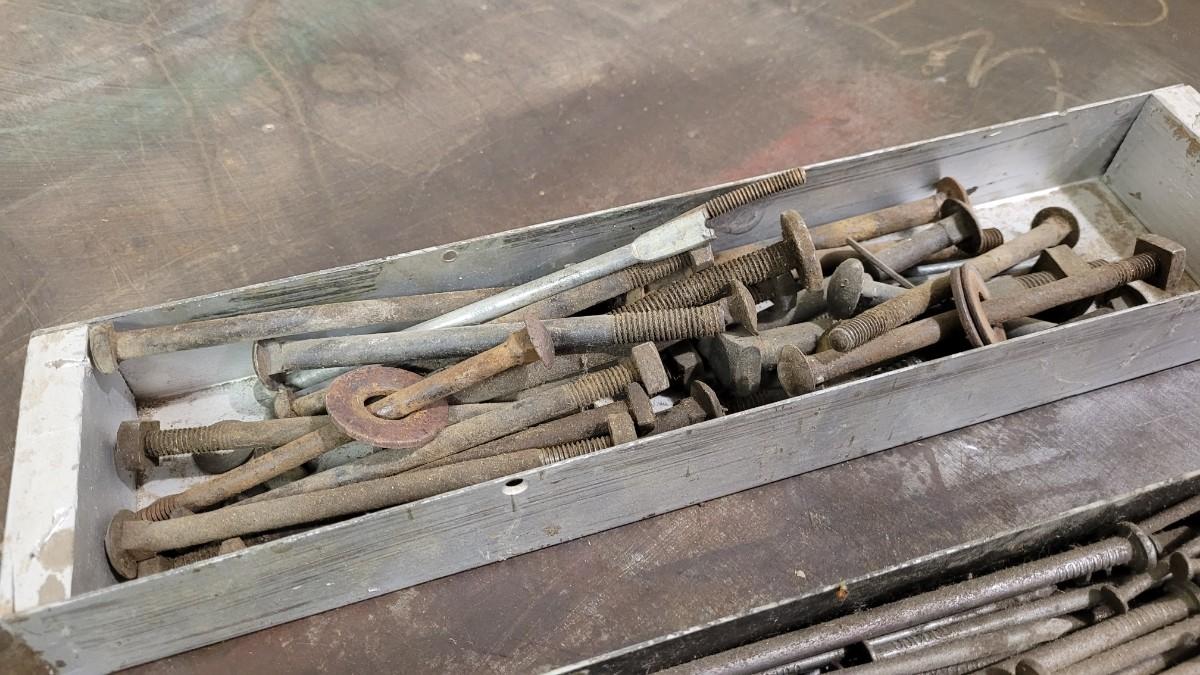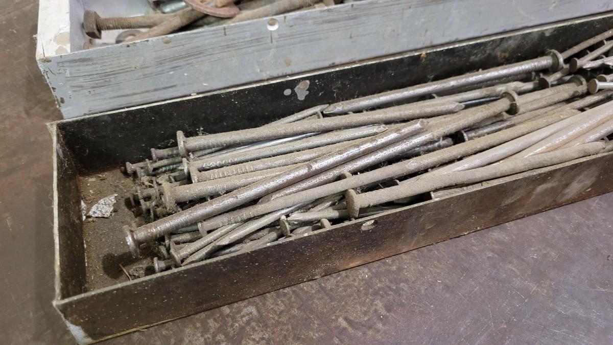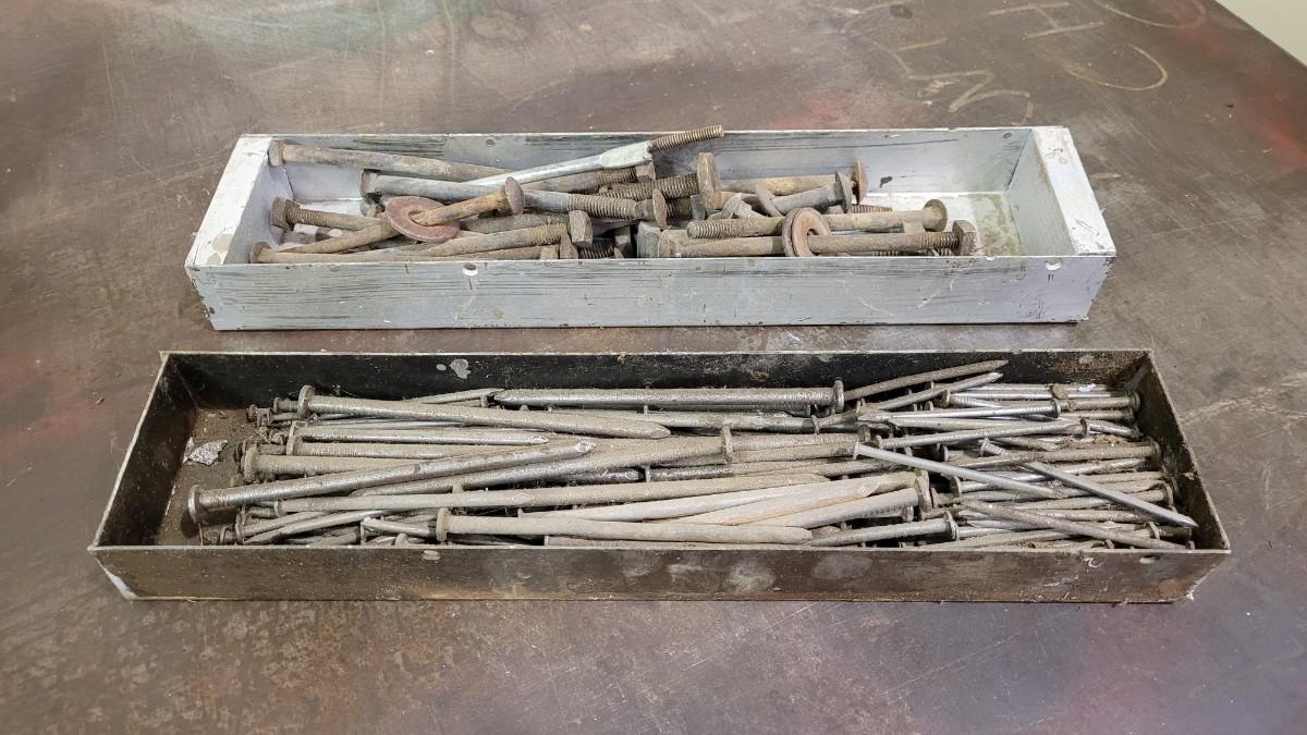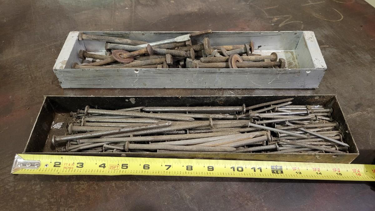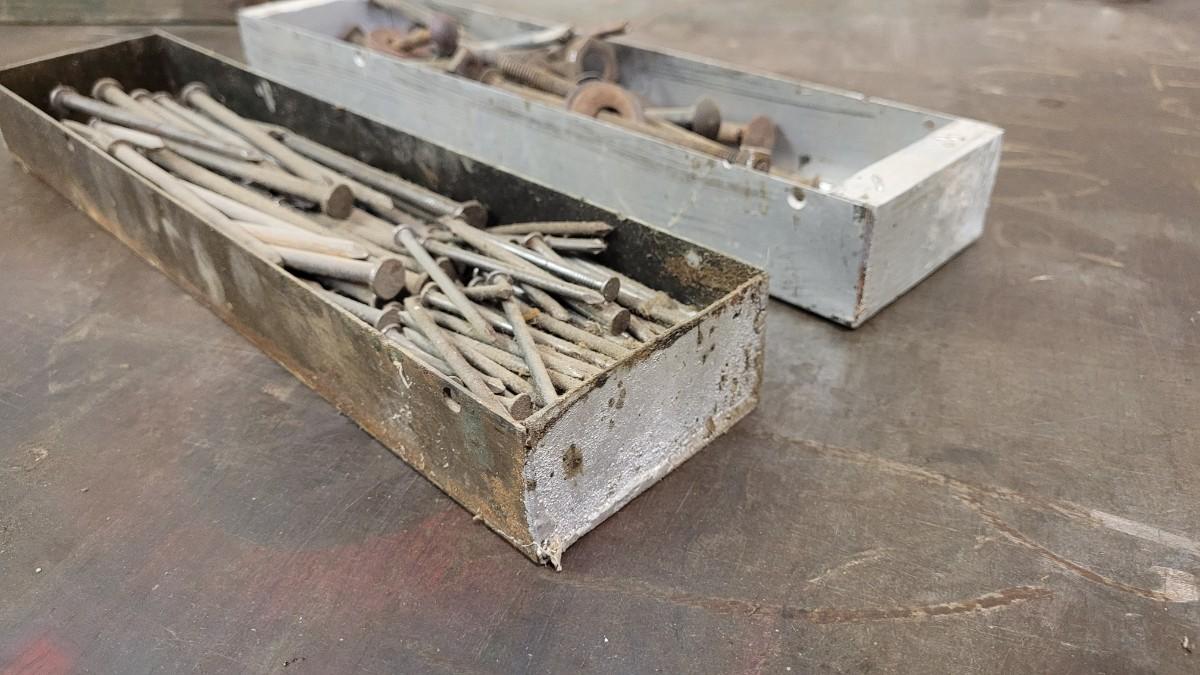 Lot 96: (2) Vintage Hardware Pans + Assorted Hardware Lot #1