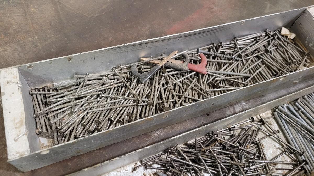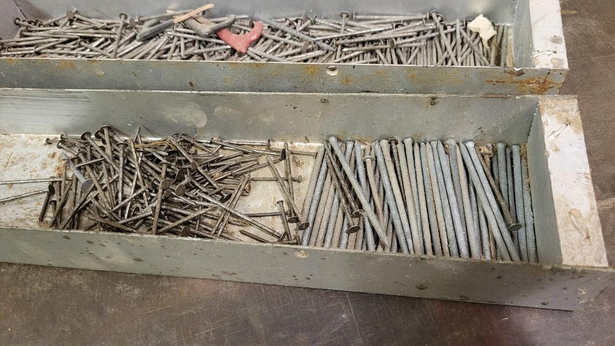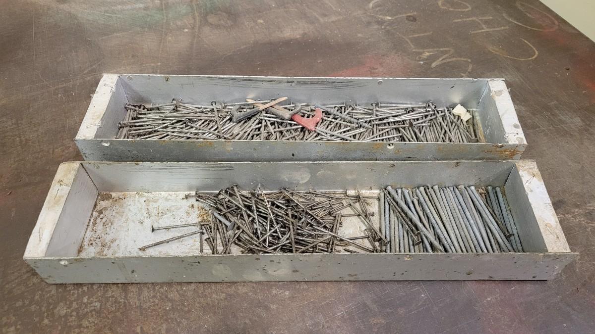 Lot 97: (2) Vintage Hardware Pans w/ Assorted Hardware Lot #2