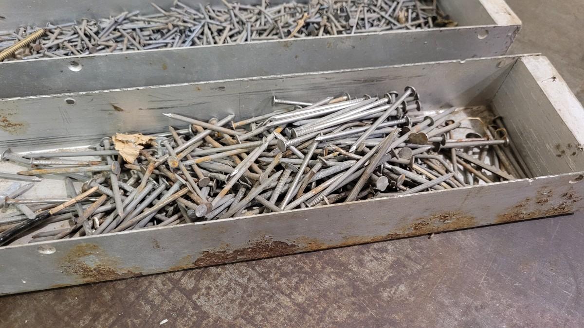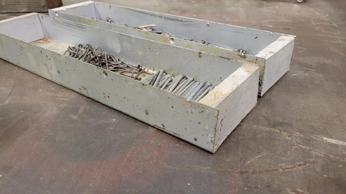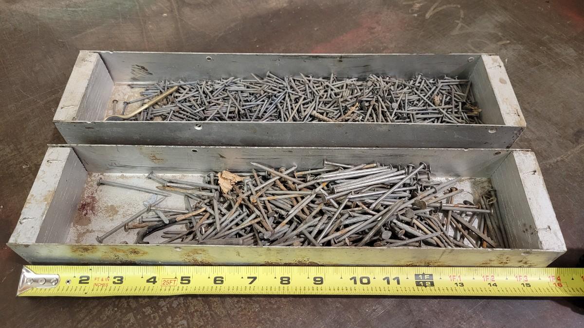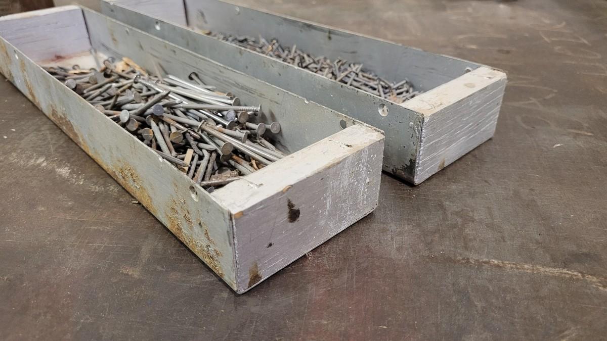 Lot 98: (2) Vintage Hardware Pans w/ Assorted Hardware Lot #3