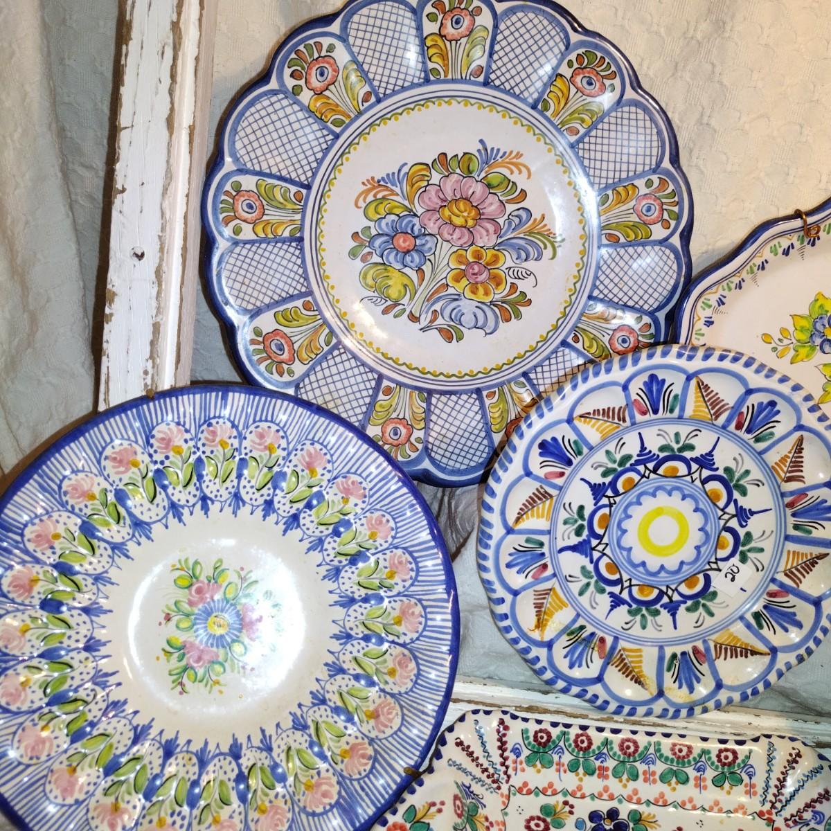 Lot of 6 hand-painted Spanish Talavera Plates by El Carmen, De La Reina, P. ARZ & DeLa Cal Barrellza Puente