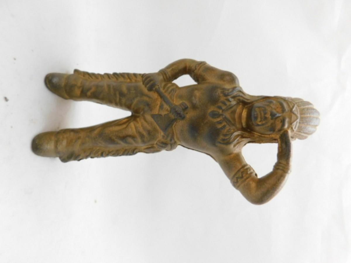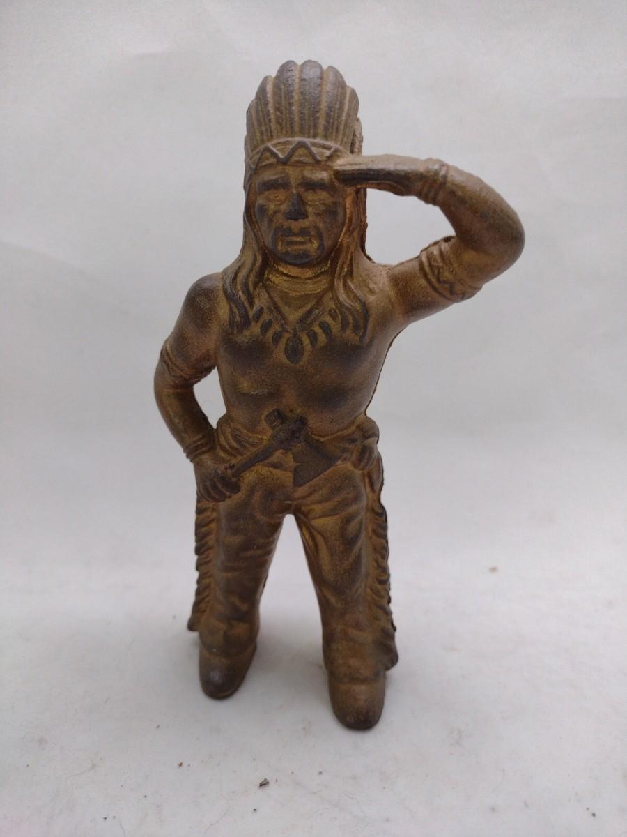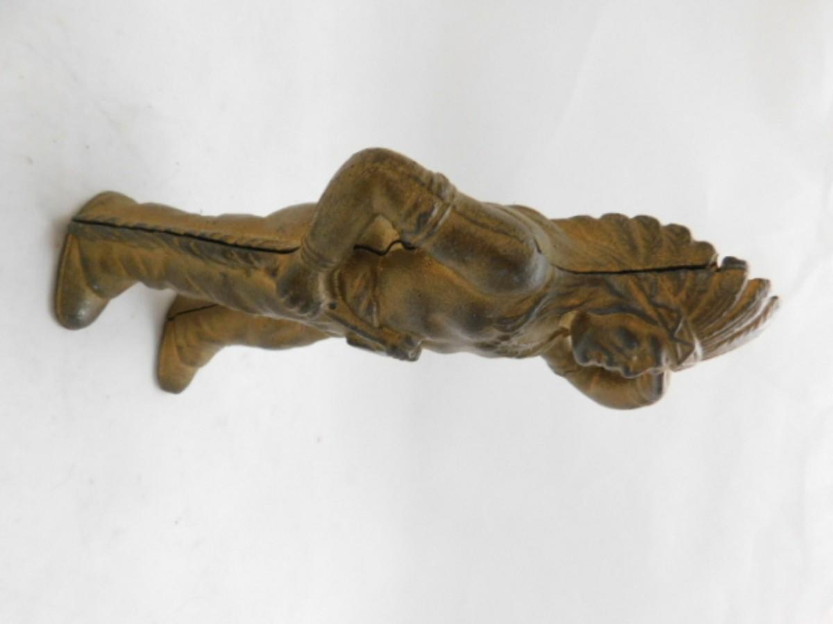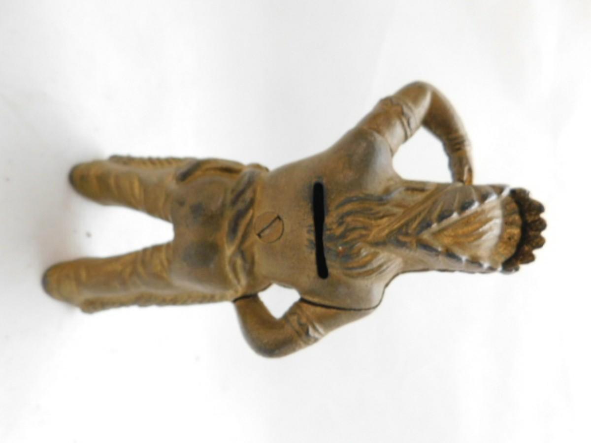 Vintage Hubley Cast Iron Native American with Tomahawk Coin Bank