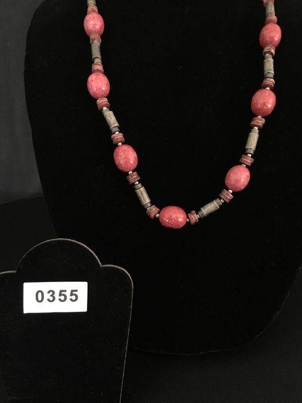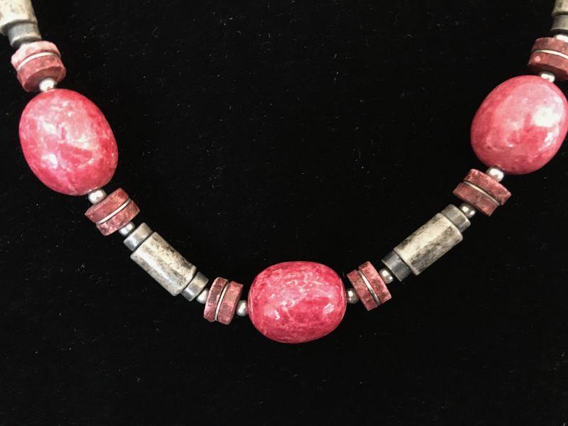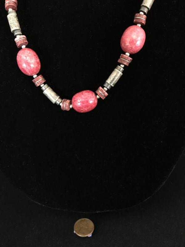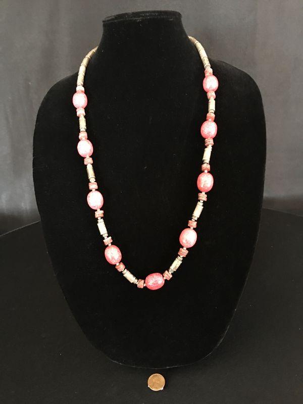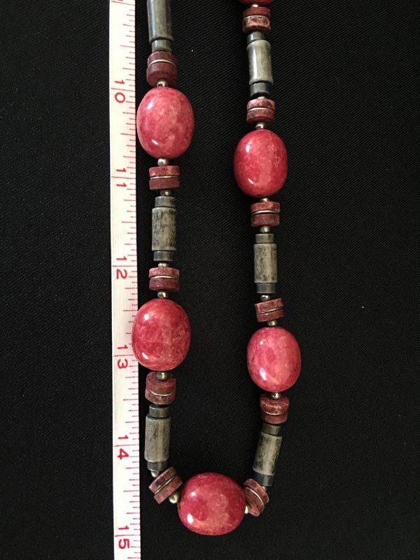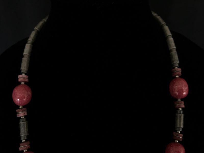 Necklace w/ Porcelain Beads in Warm Grey & Deep Rose