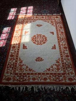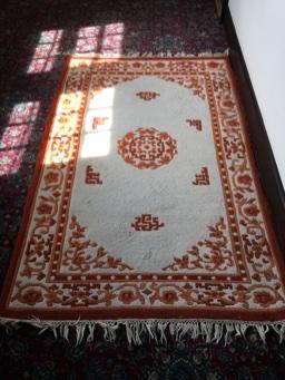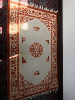 Orange & White Asian Medallion Carved Wool Rug Lot # 414