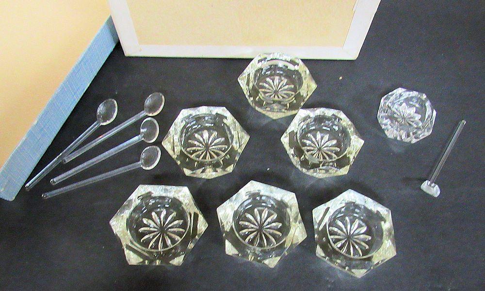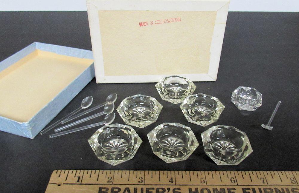 Original Set of Czechoslovakia Salt Dips, 4 Glass Spoons, and 1 Extra Salt and Glass Spoon