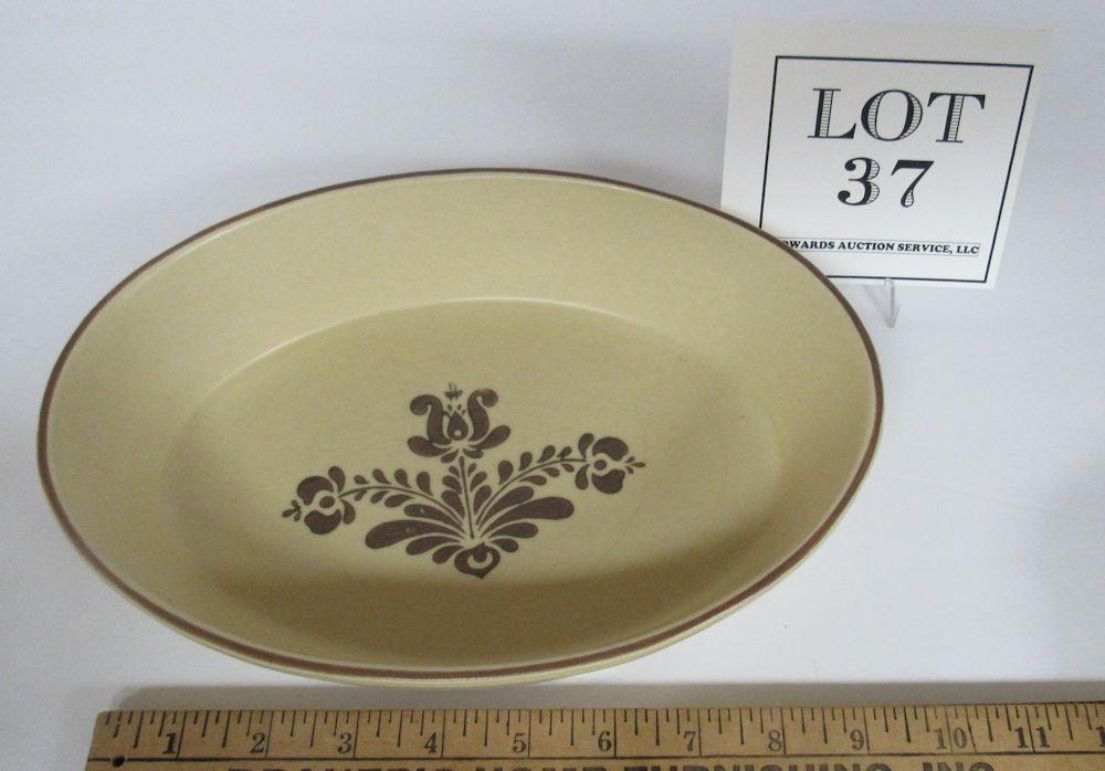 No chips or cracks, but does have minor use wear. Heavy stoneware. Shipping is available at shipping cost plus $5.00 handling fee on up to 8 lots, $10.00 handling fee on 9 or more lots or two boxes.