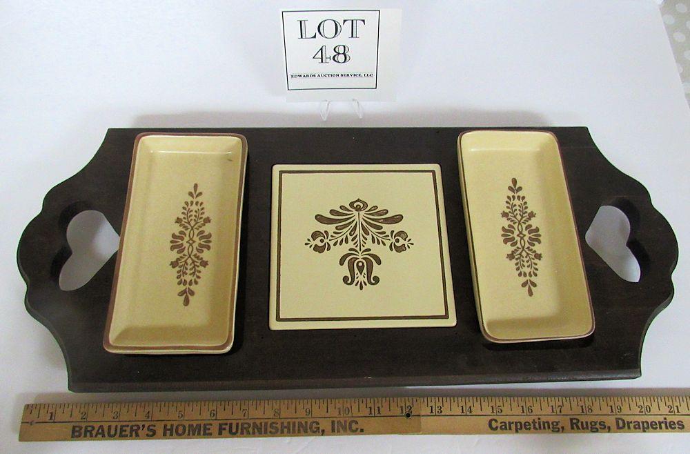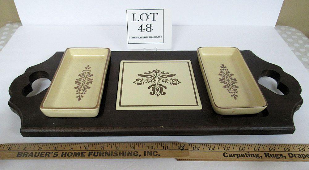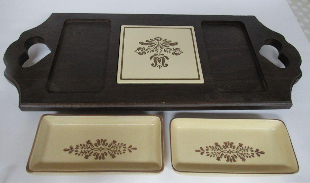 Pfaltzgraff Village Serving Tray With Inserts On Wood