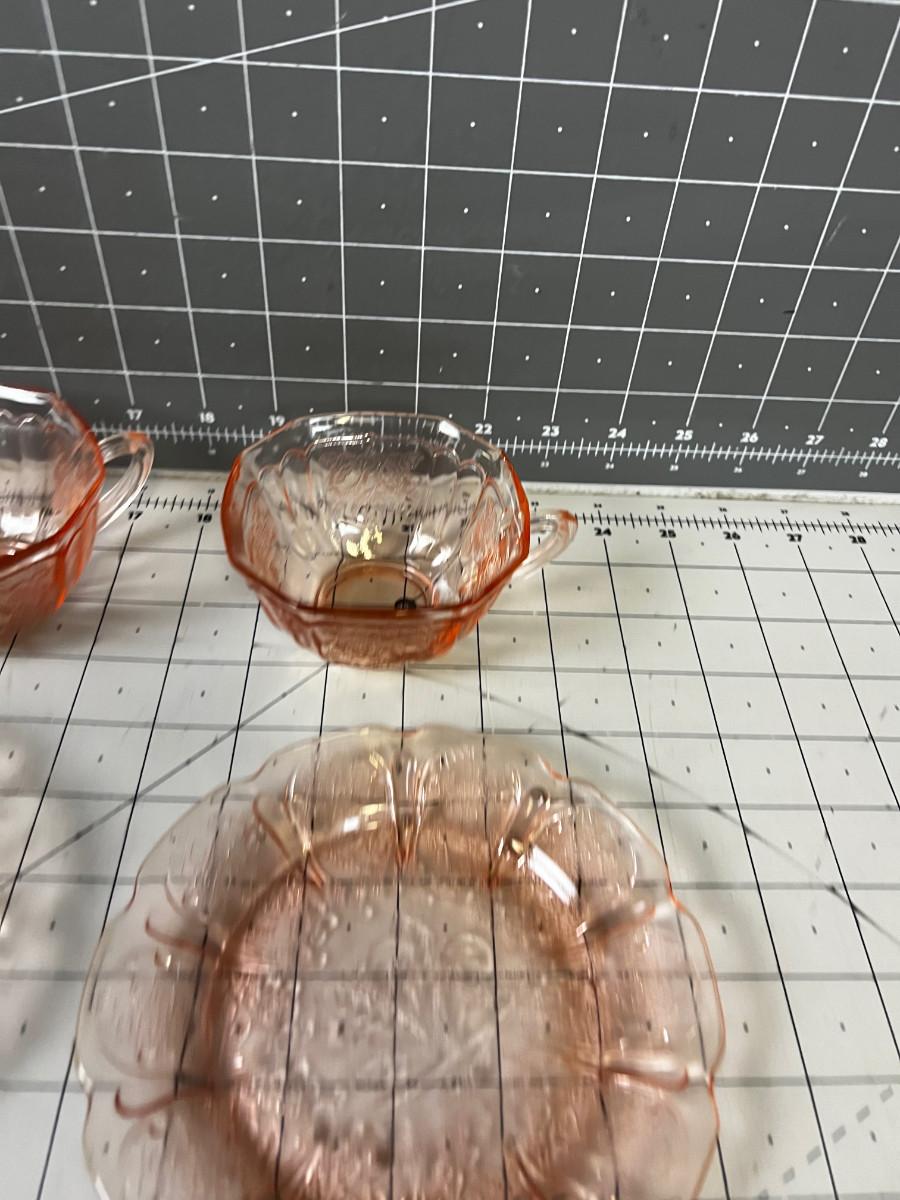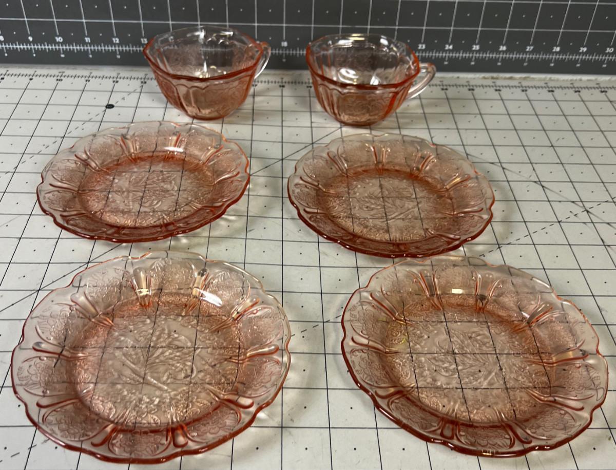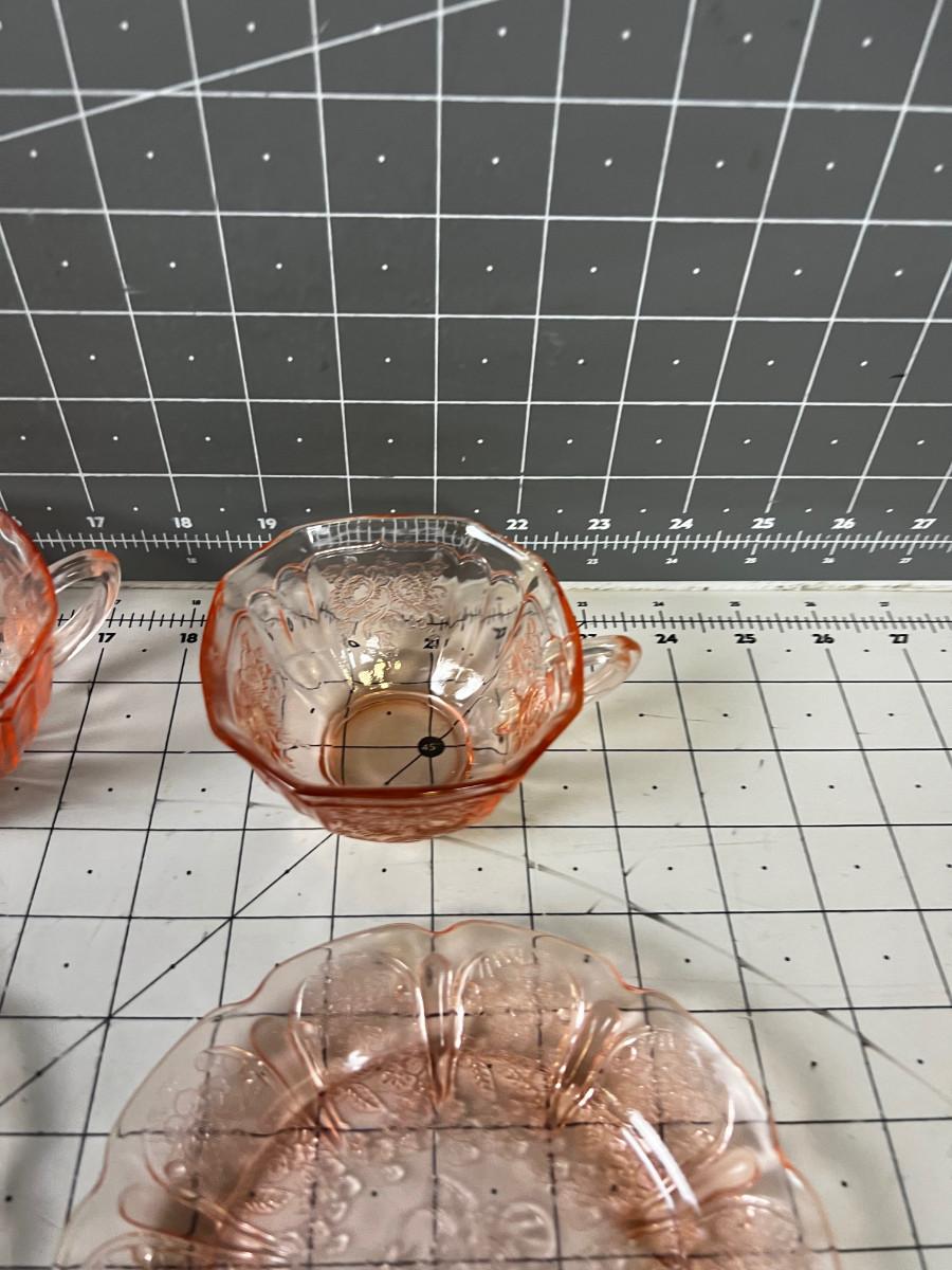 Pink Depression Glass Demitasse 4 Plates & 2 Cups