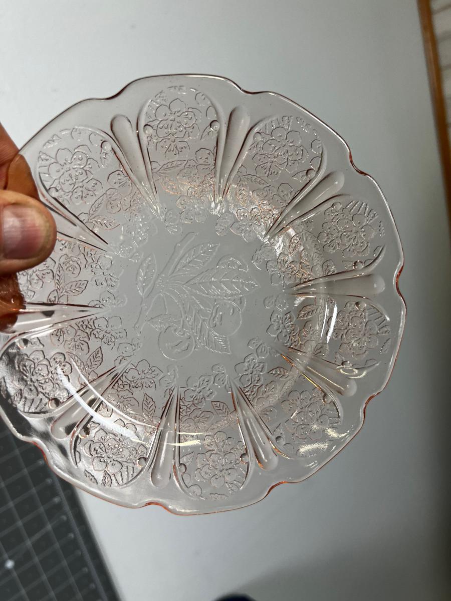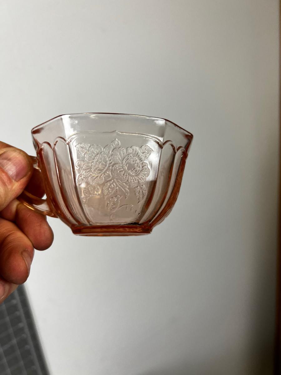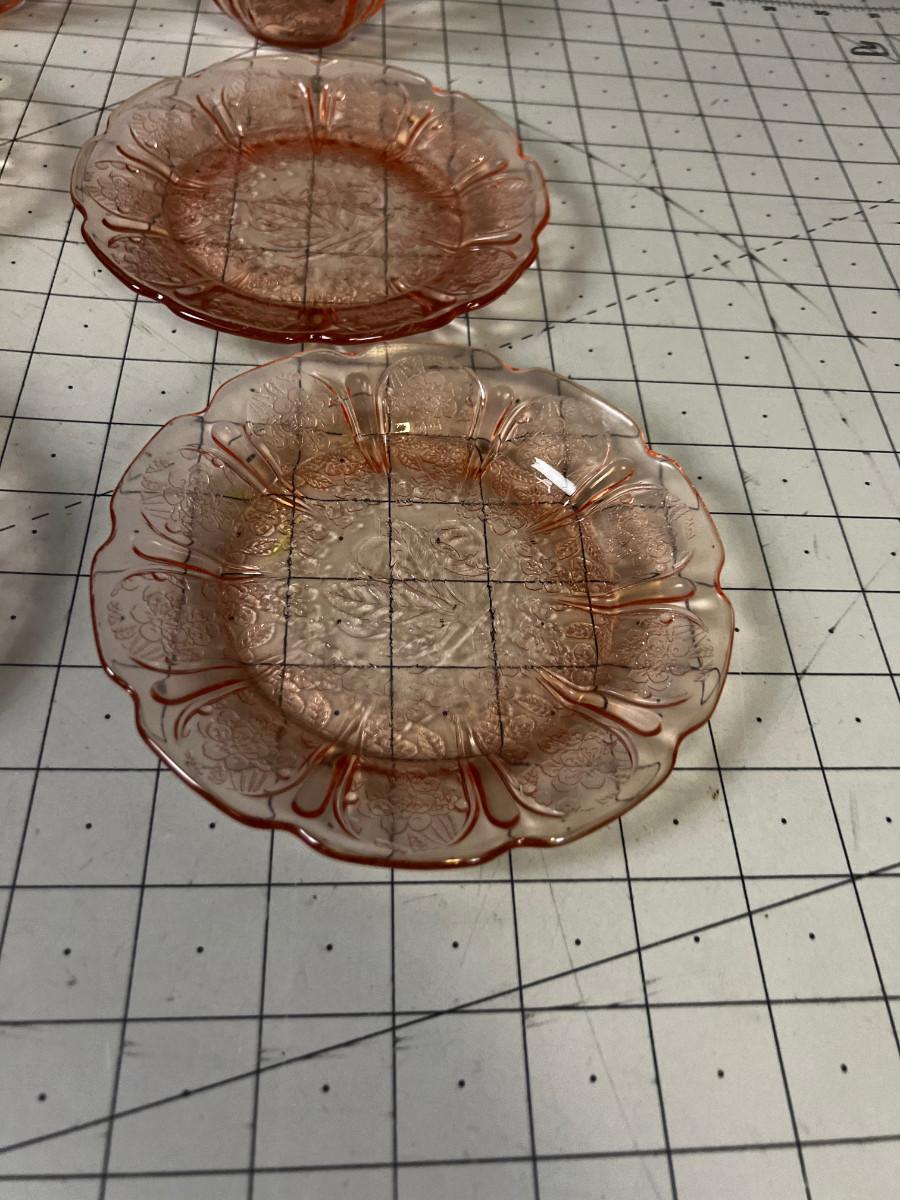 Pink Depression Glass Demitasse 4 Plates & 2 Cups