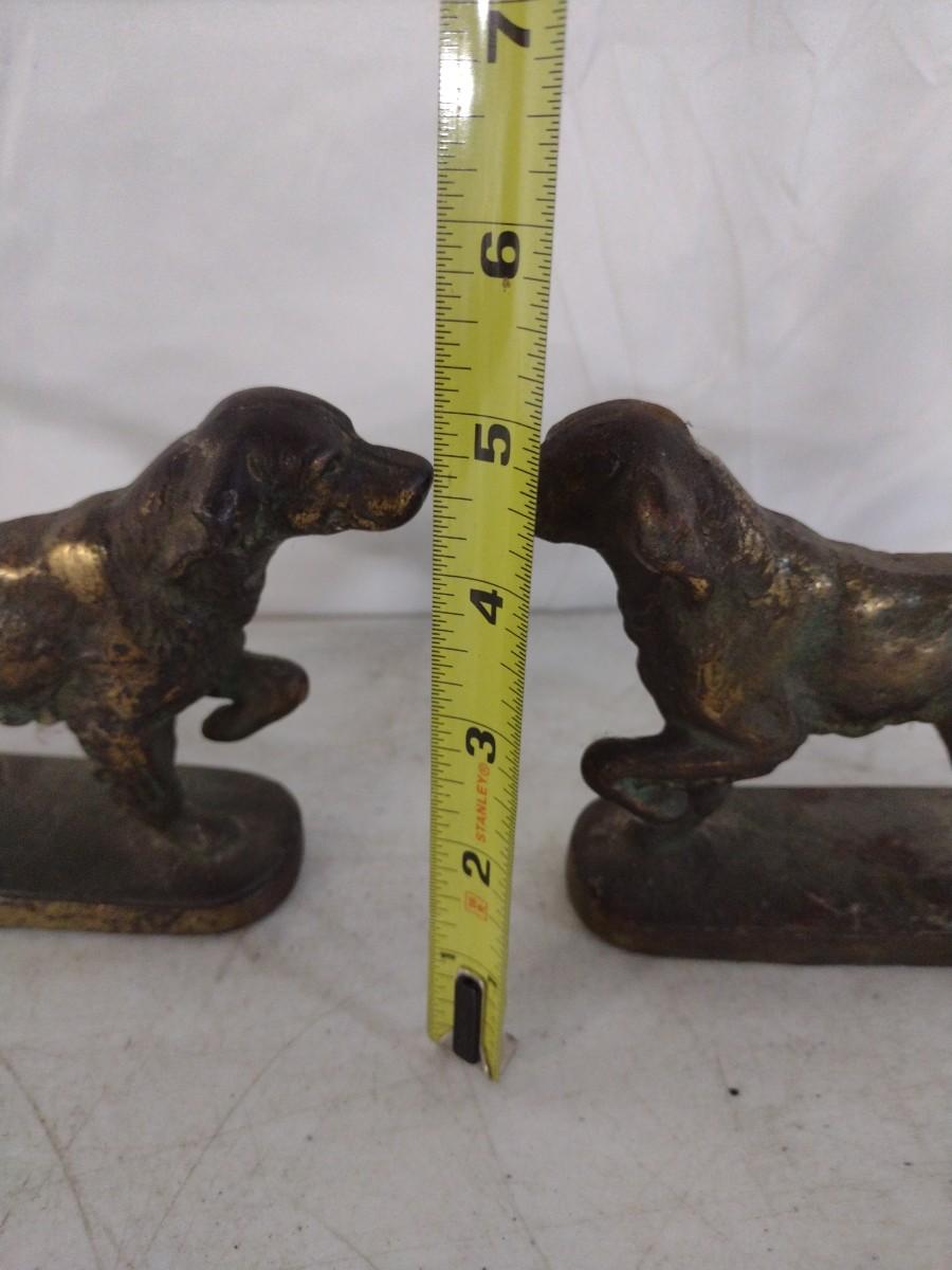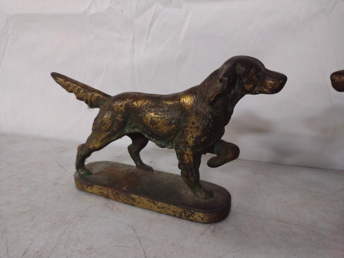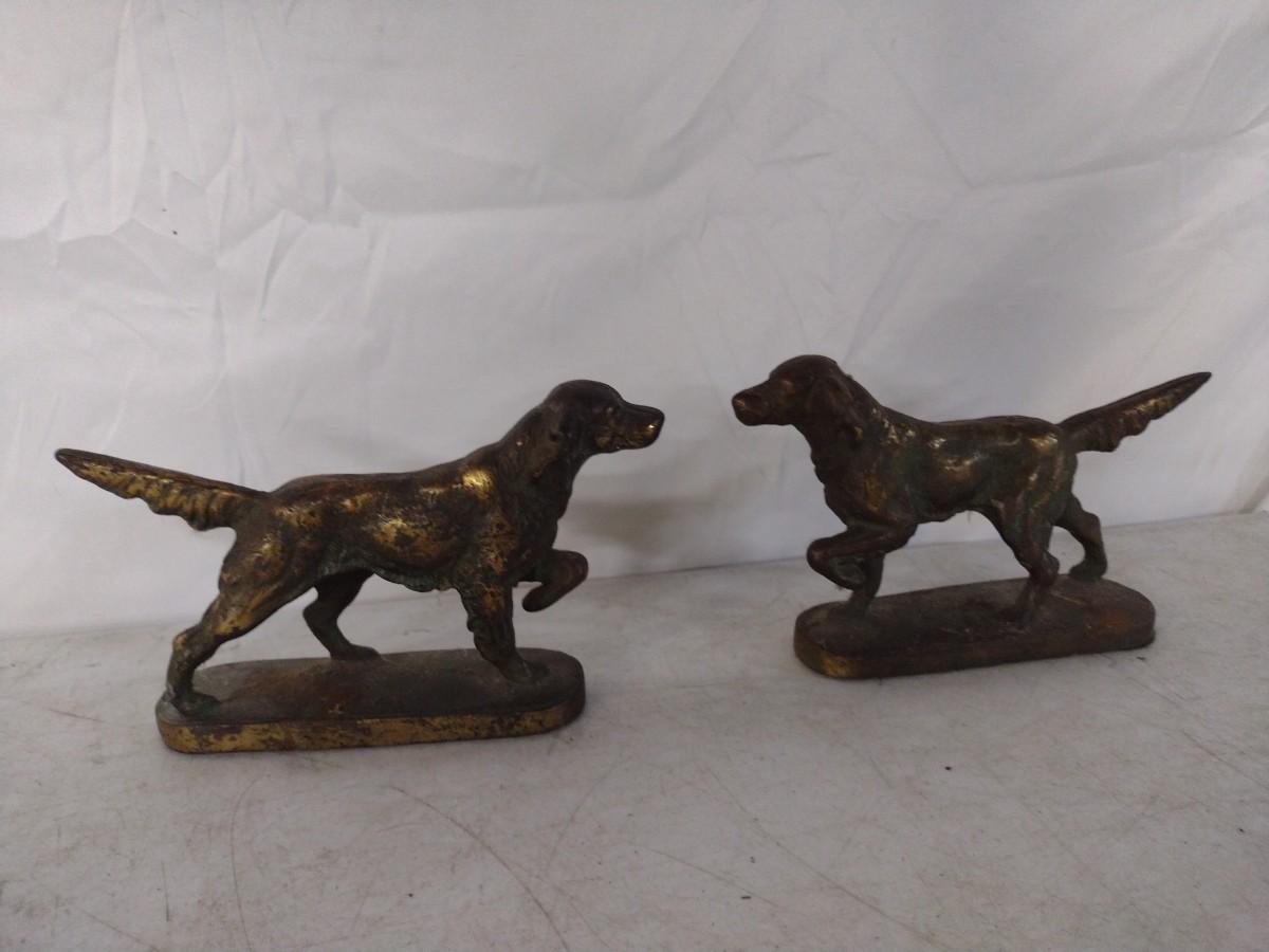 Antique Hubley Solid Brass Hunting Dogs Book Ends