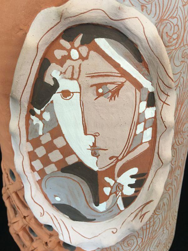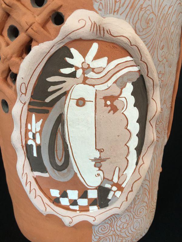 Portrait Vase Cubist Terracotta Bottle 14.5" Lot # 307