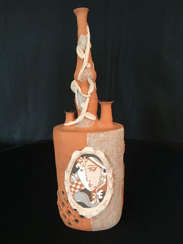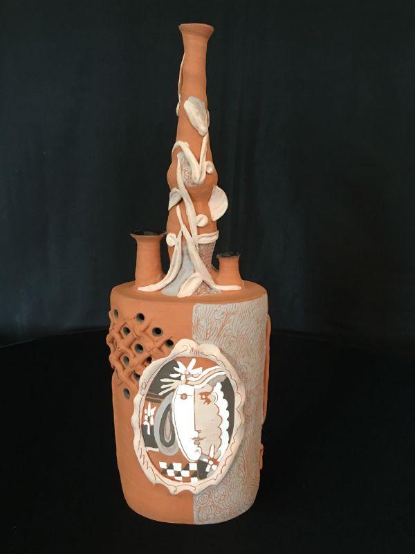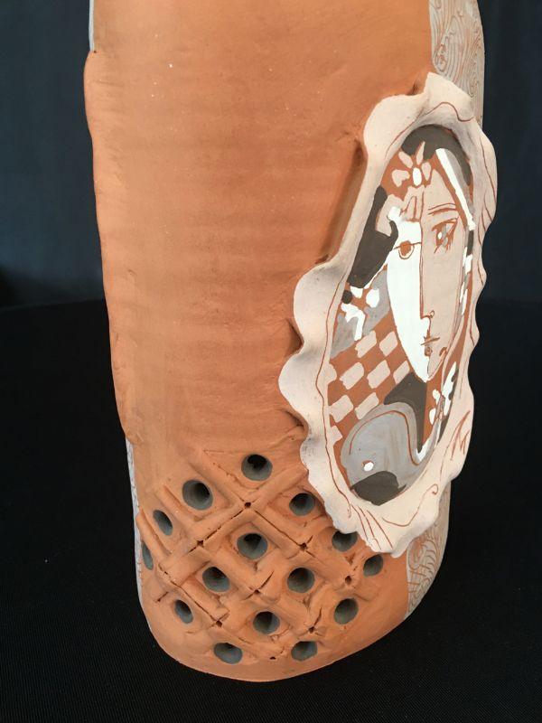 Portrait Vase Cubist Terracotta Bottle 14.5"  Lot # 307