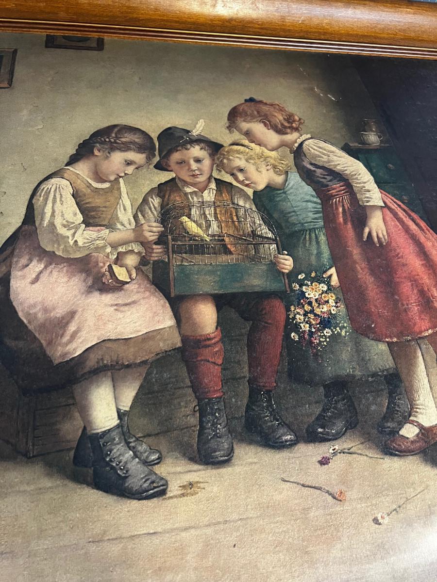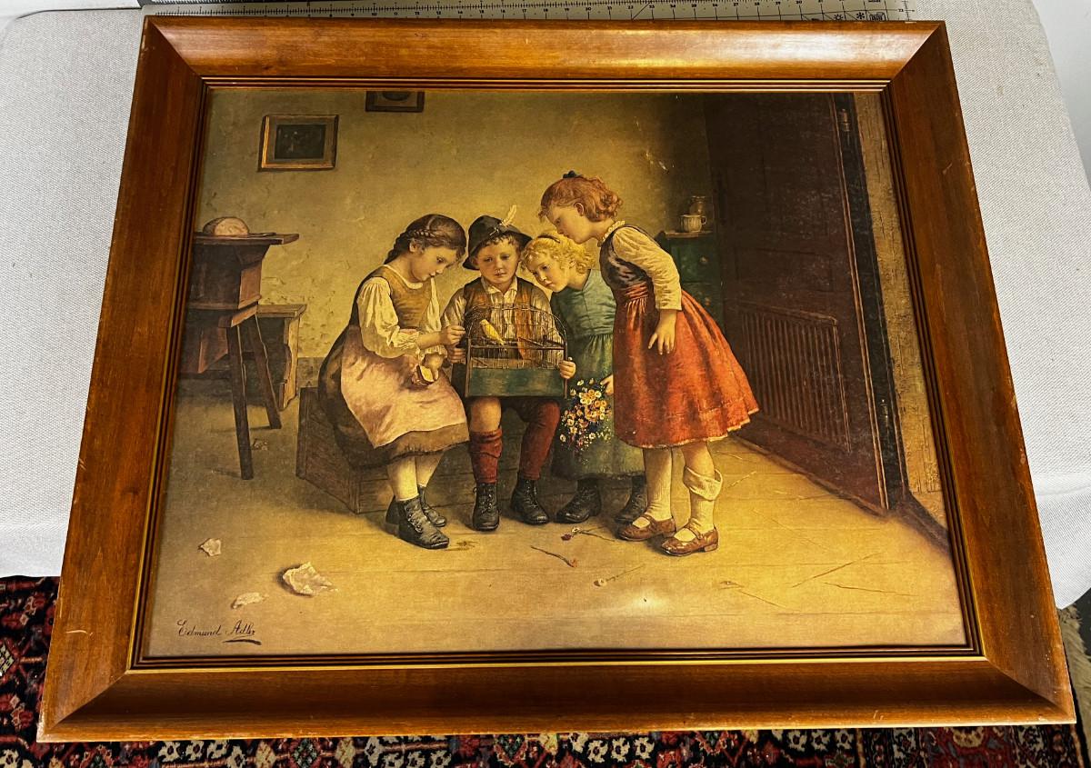 Print by Edmond Alder 4 Children and a Bird Cage Picture