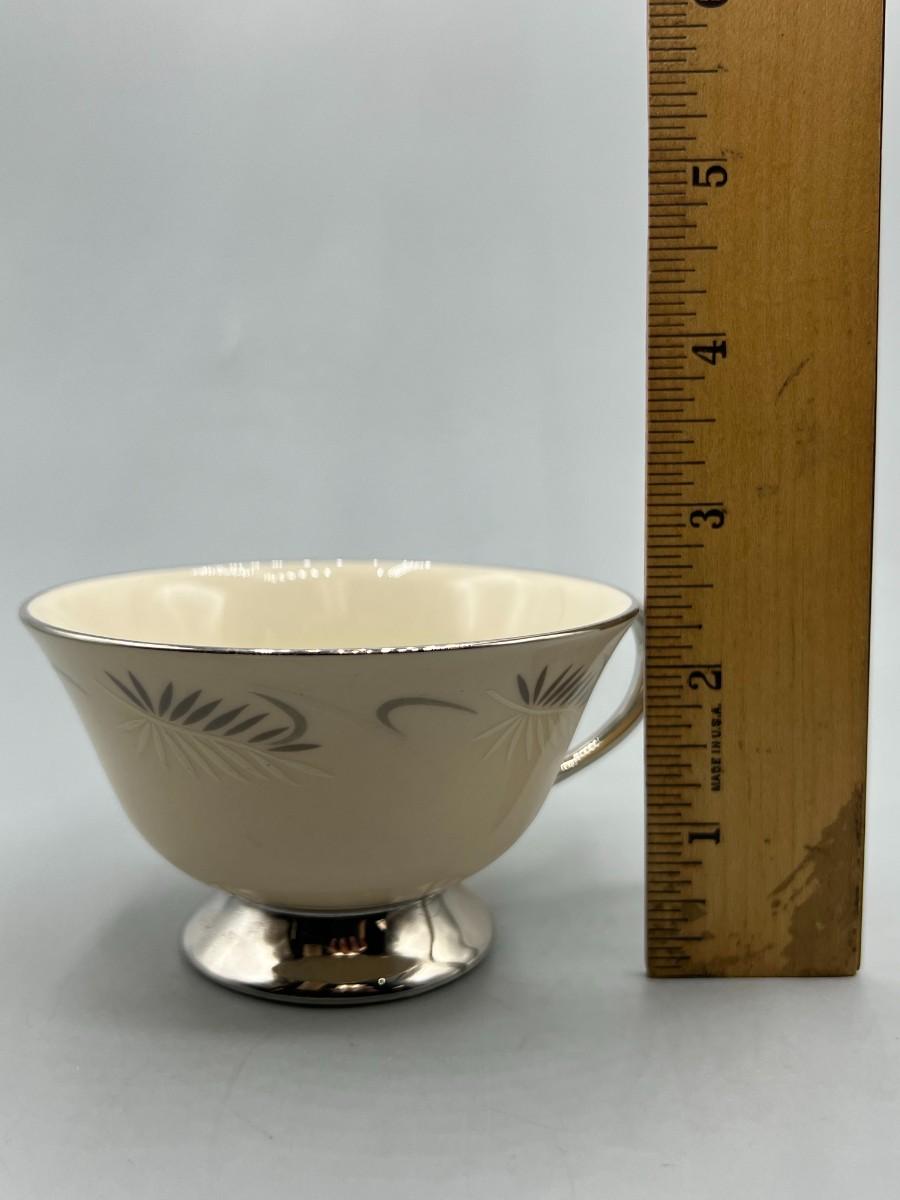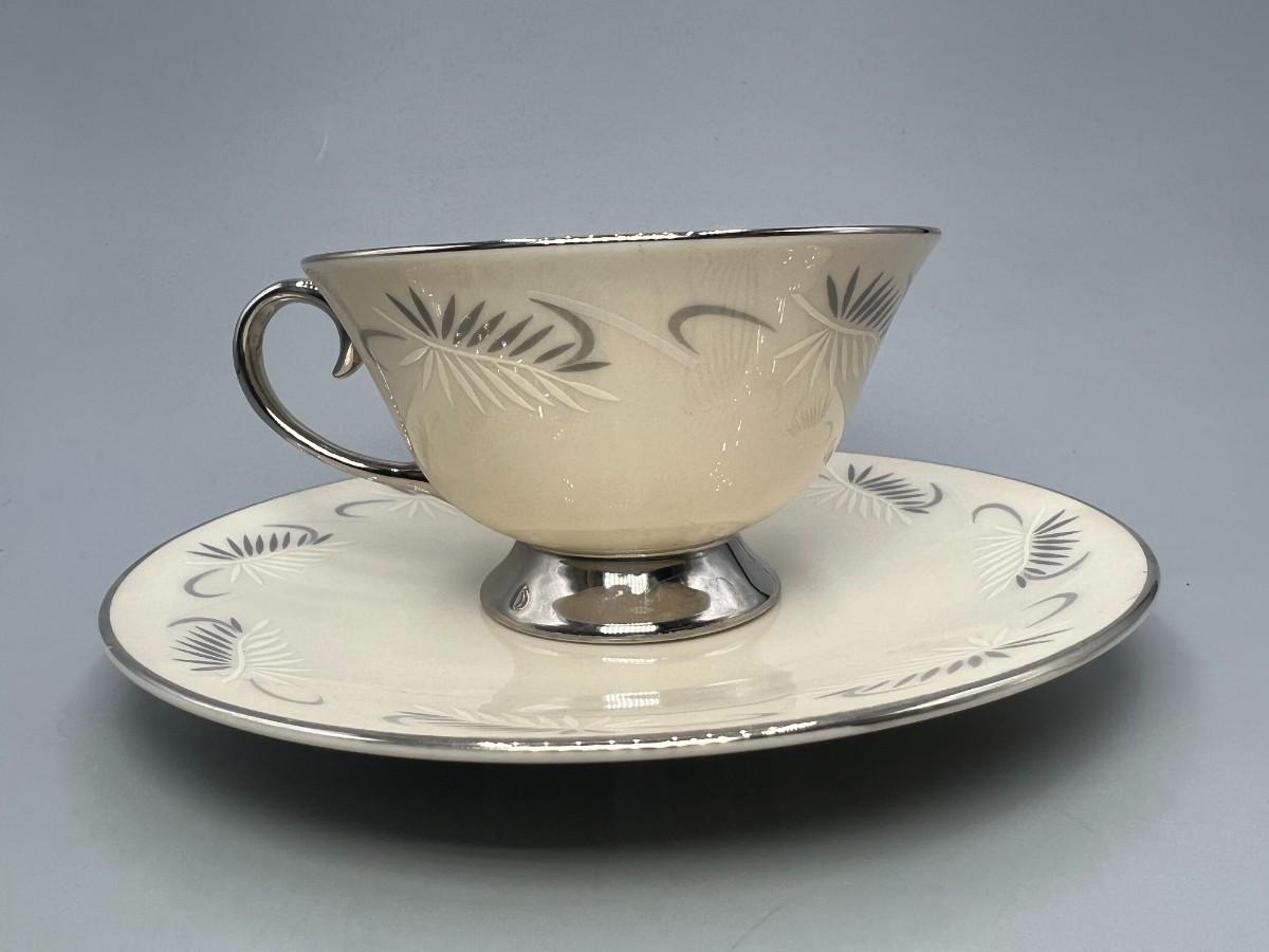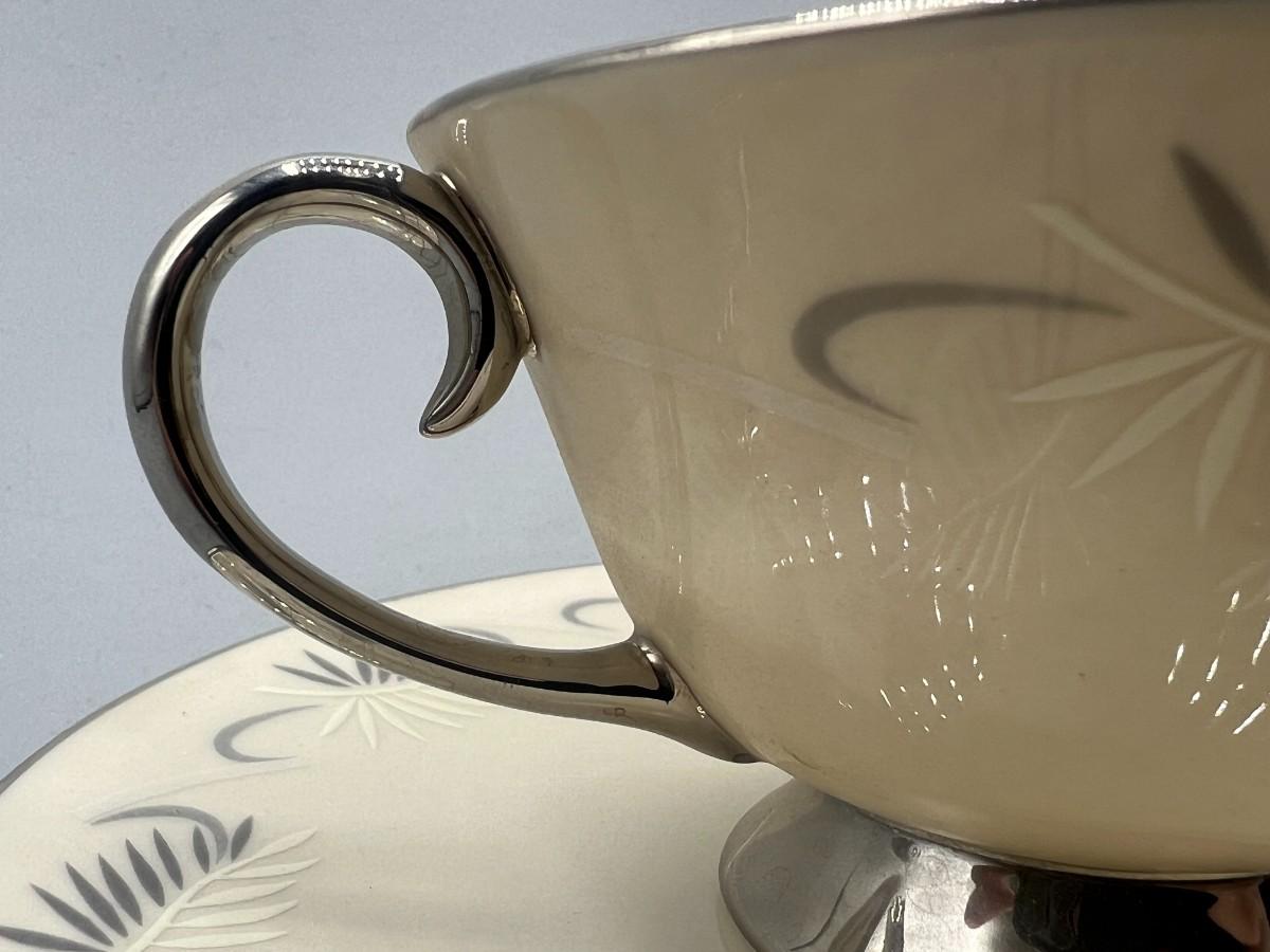 Retro Flintridge China Made in California Teacup & Saucer Modern Silver Leaf Motif Design