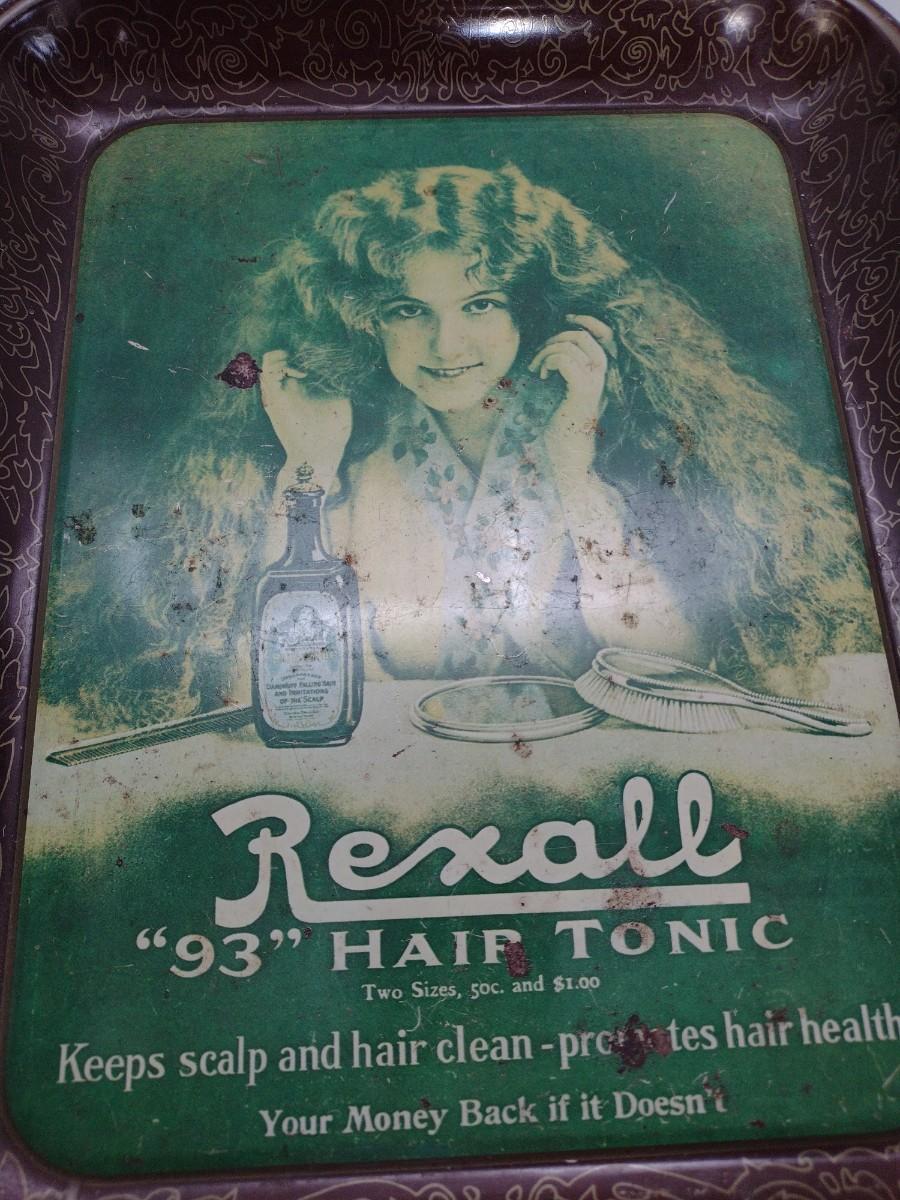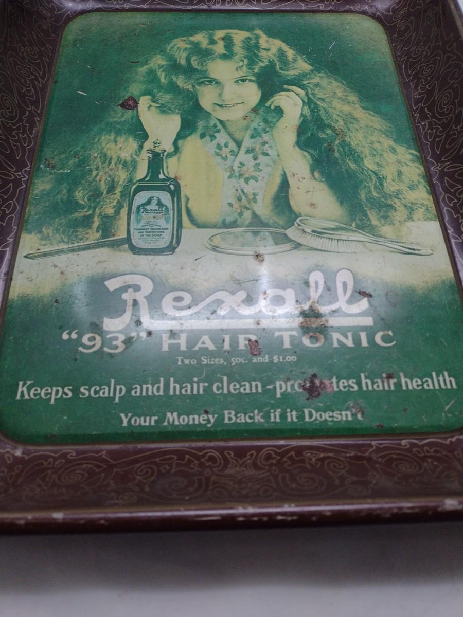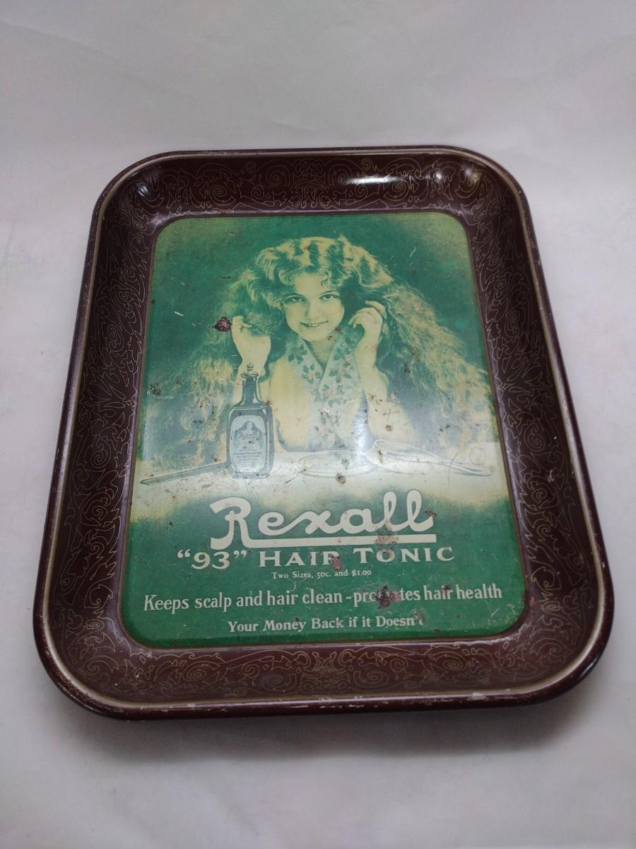 Vintage Rexall Hair Tonic Advertising Metal Service Tray
