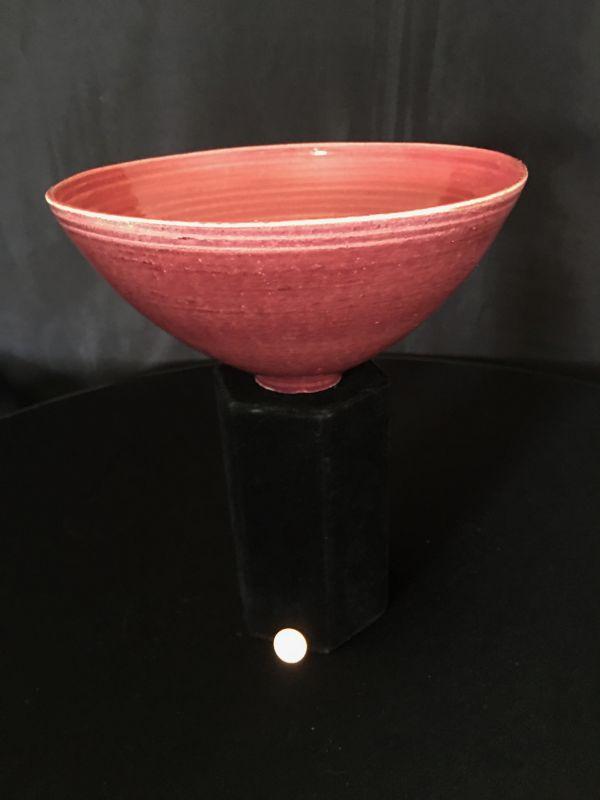 Rose/Red Thin Pottery Bowl Signed Lot # 318