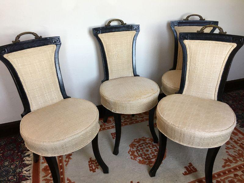 Set of Four Upholstered Game Table Chairs w/ Handle Backs Lot # 401