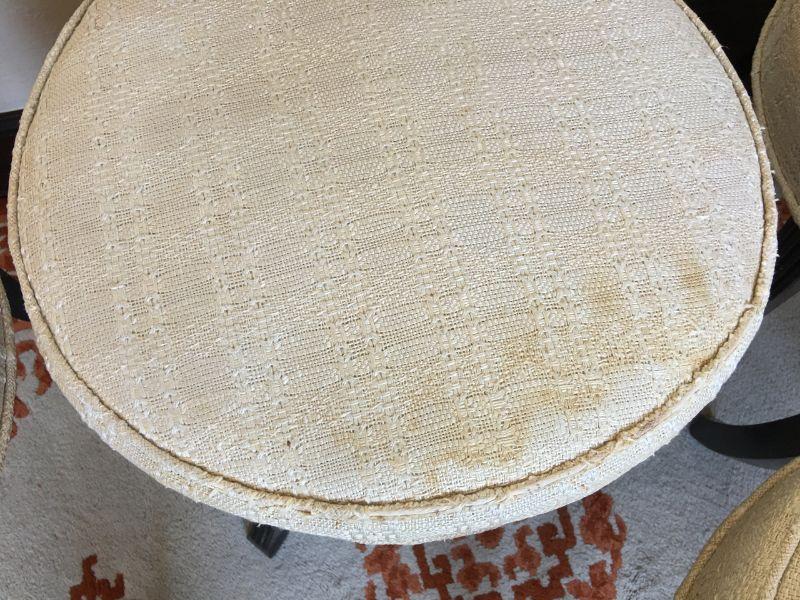 Note: Stain to upholstery & slight damage to one chair upholstery back