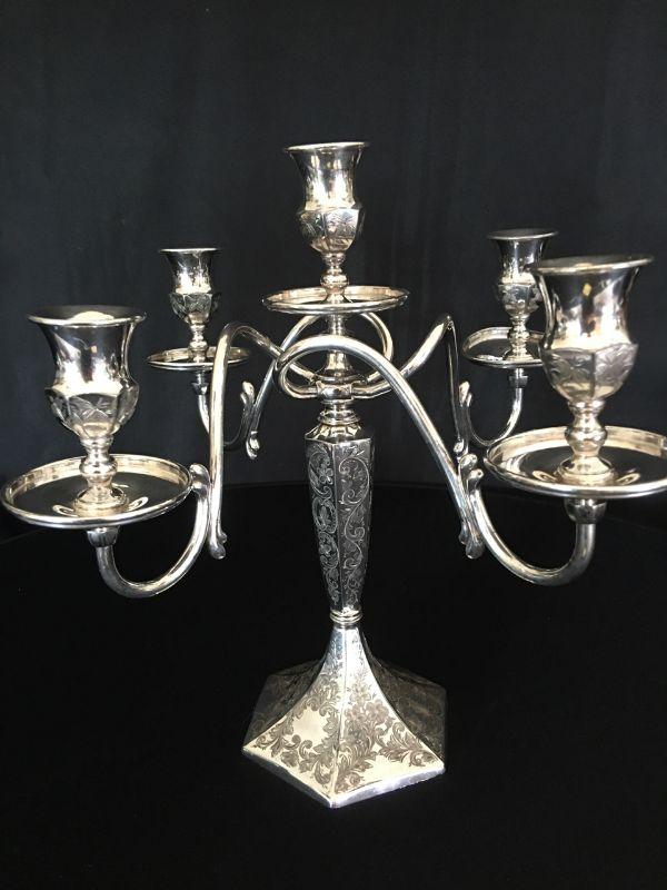 Silverplate 5-Light Candlestick Exquisitely Engraved Lot # 360