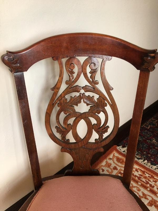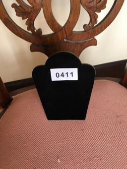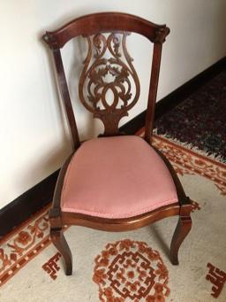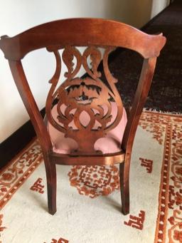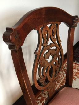 Solid Wood Vintage Chippendale Inspired Single Chair w/ Pink Seat Lot # 411