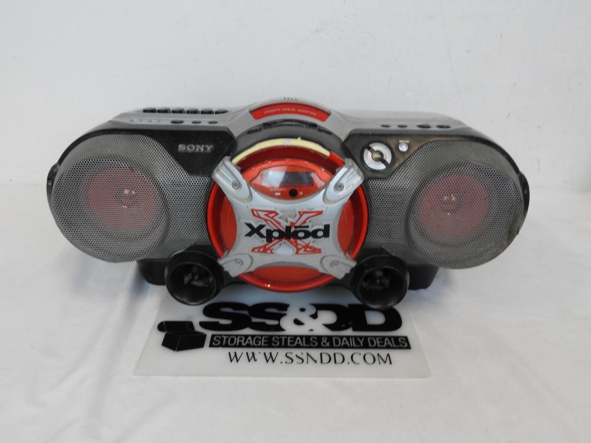 Sony XPLOD Cassette/CD/Radio w/ Power Drive Woofer, Uses 8 D-Batteries, CD Cover Is Broken - WORKS