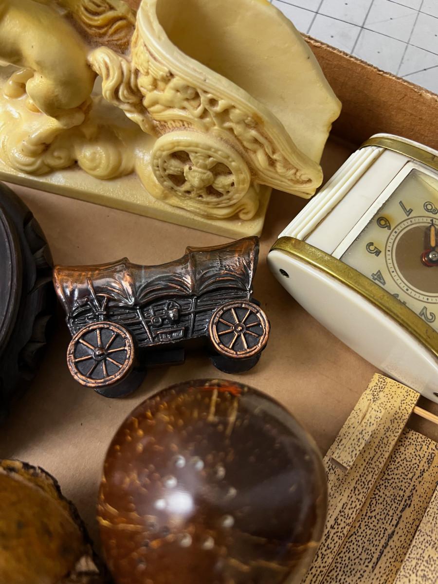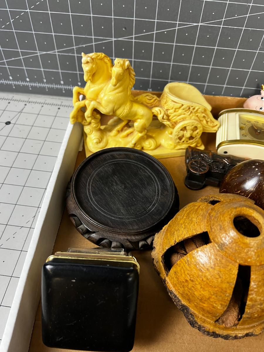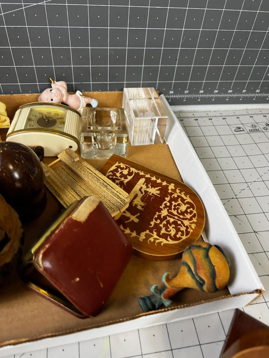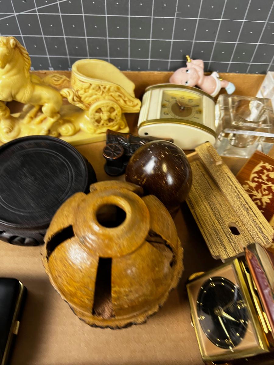 Tray of Stuff: Bookends, Lights, Sculpture, Vase Crystal etc.