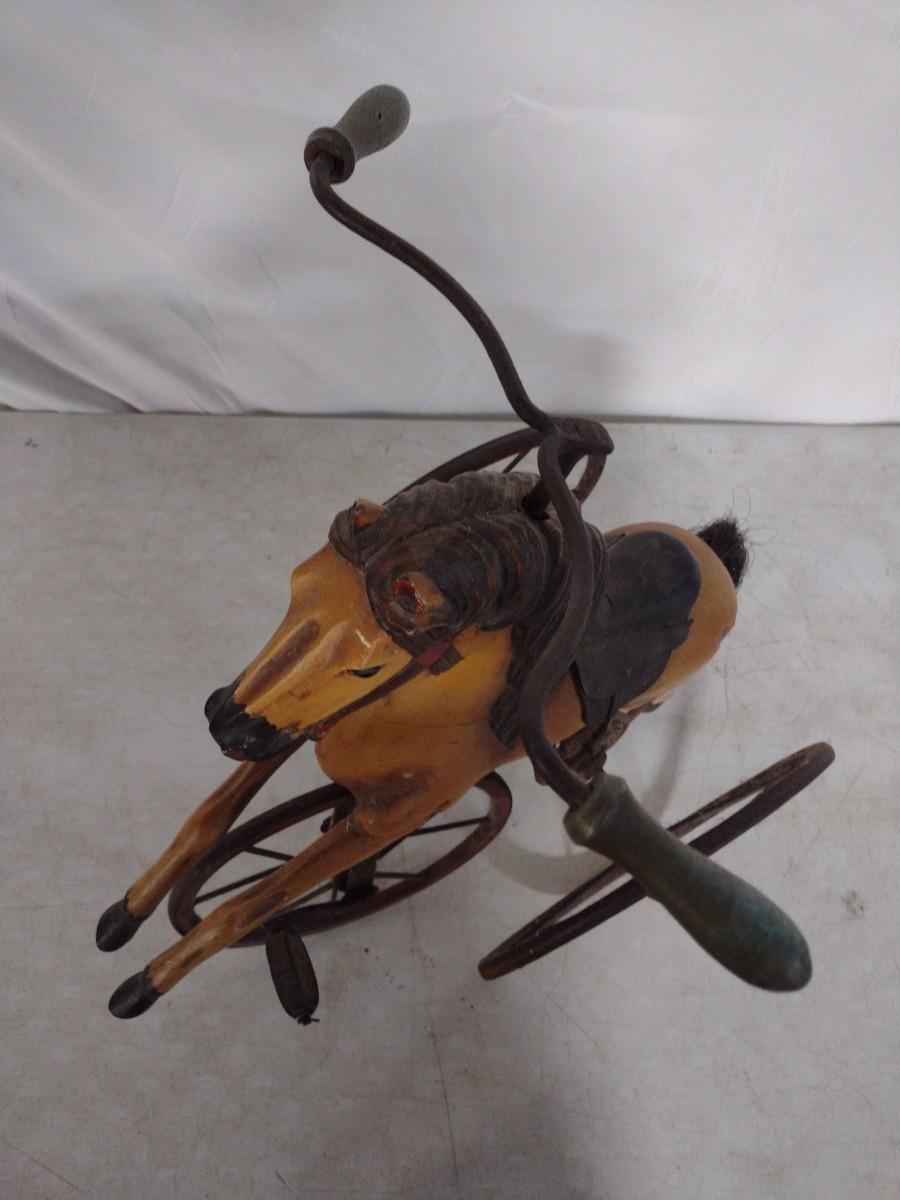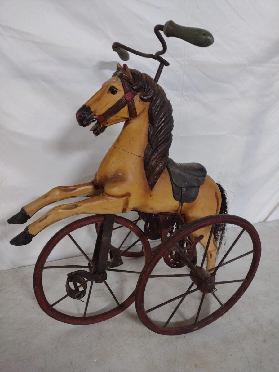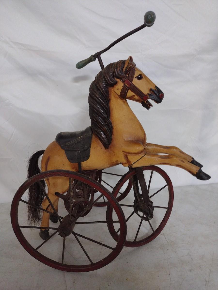 Vintage Pedal Horse Tricycle. Has a chipped front leg as shown.
