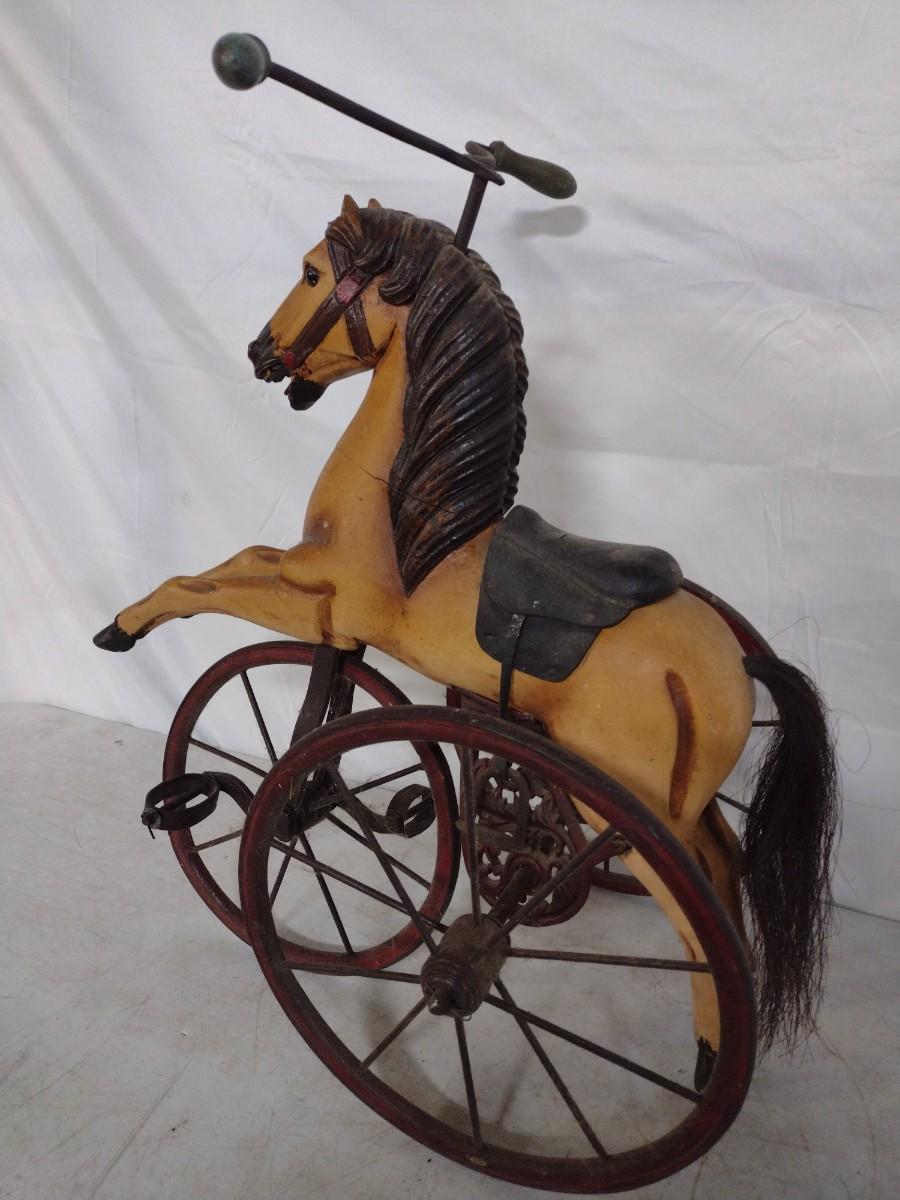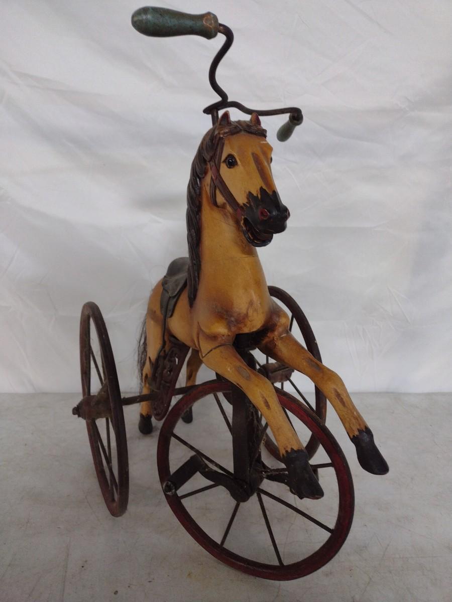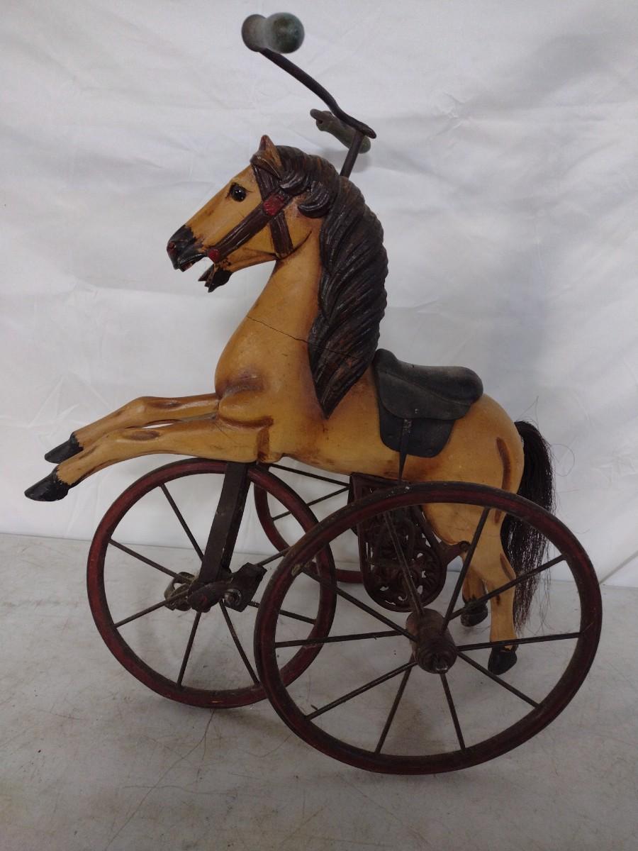 Vintage Pedal Horse Tricycle. Has a chipped front leg as shown.